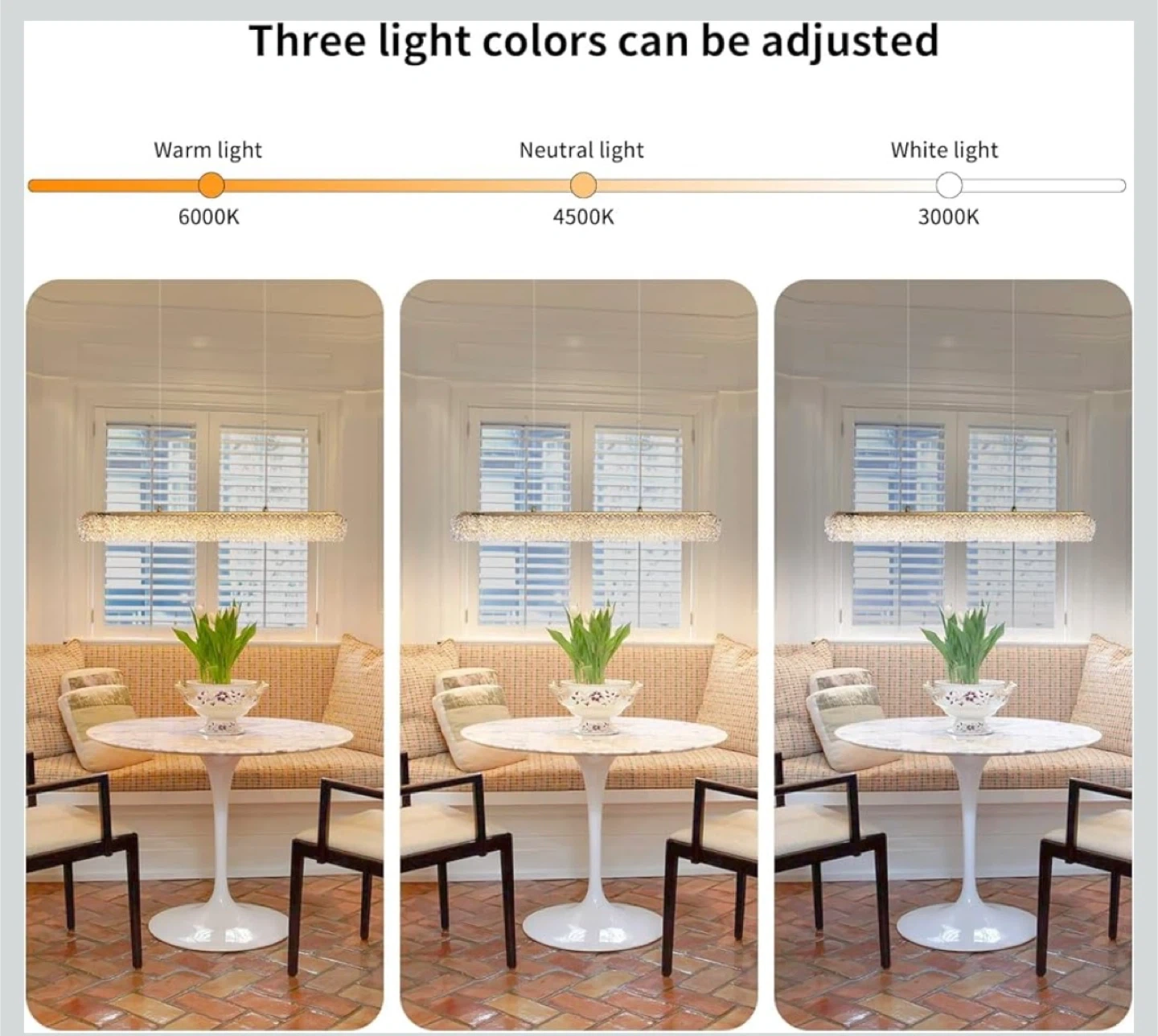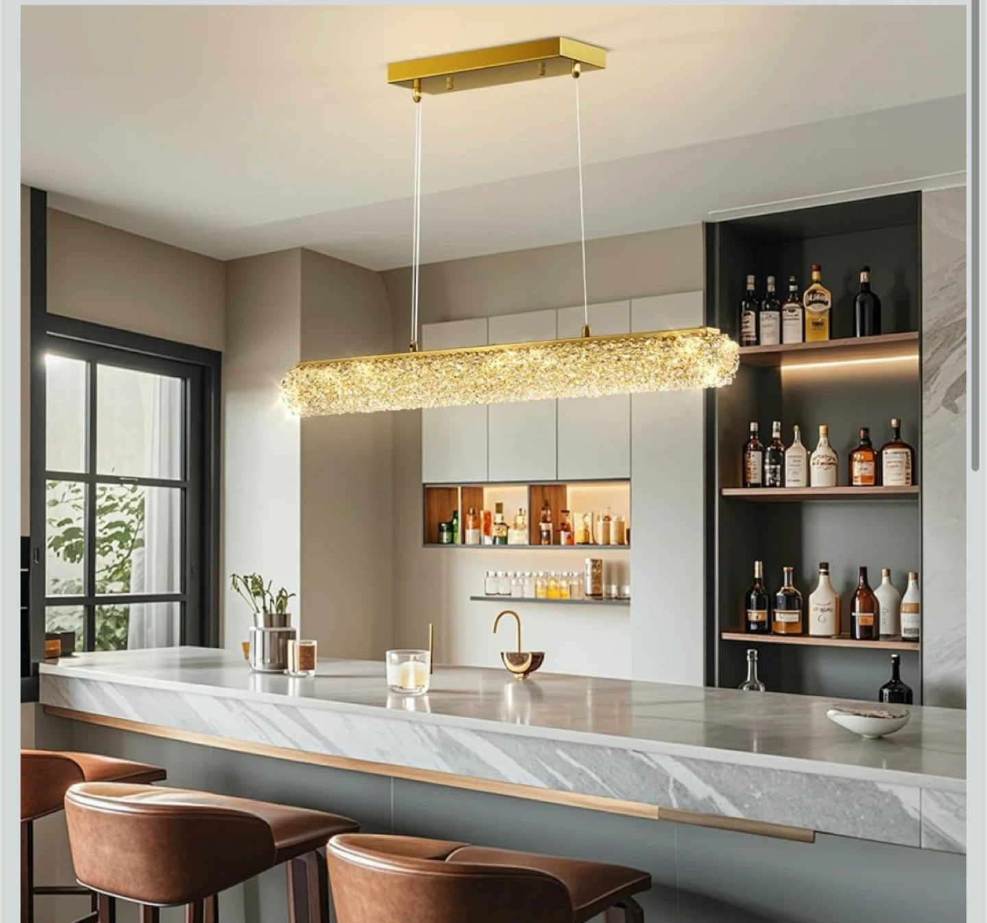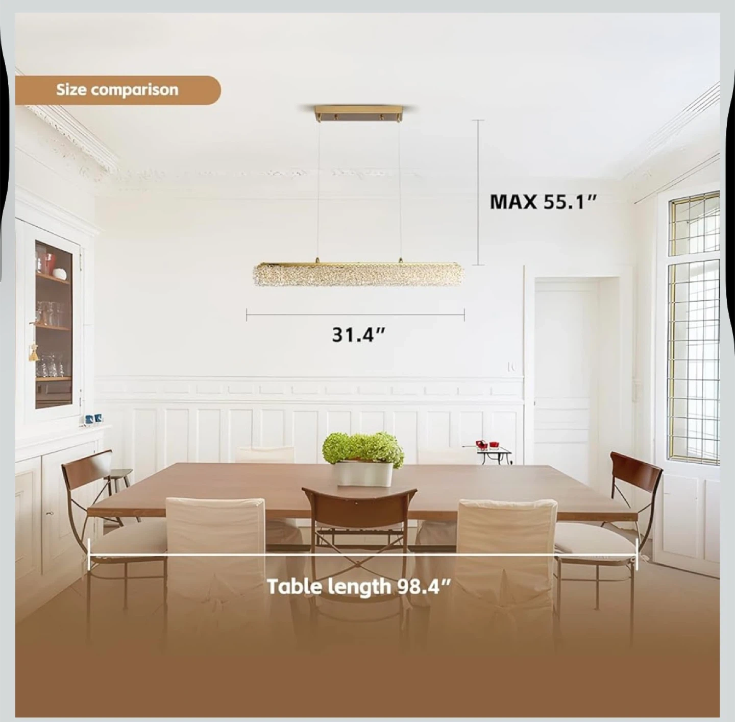 Add a touch of sparkle to your home with this modern crystal LED pendant light! It features easy installation and adjustable light colours (warm, neutral, and white). The dimensions are 31.4" in length and a maximum height of 55.1". Perfect for your kitchen island or dining area! https://a.co/d/d0dGby1