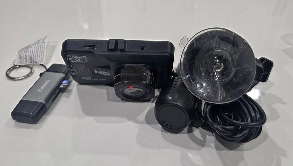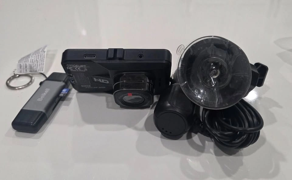 Brand new (only opened to test) – works perfectly. Fully set up and ready to go - just plug in, mount, and drive. Includes instruction manual for easy setup. Includes 32GB SD card + USB-C reader (transfer videos to phone/computer). Local meet-up – message for details