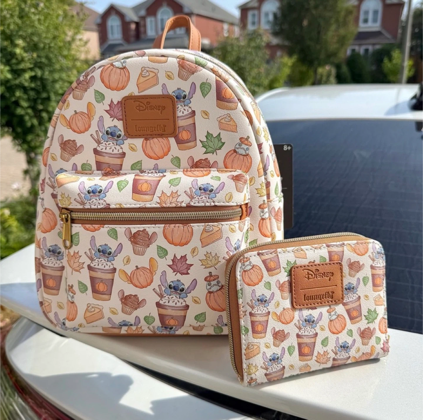 Show allNEW Disney Stitch Pumpkin Spice Latte Loungefly Backpack/Wallet