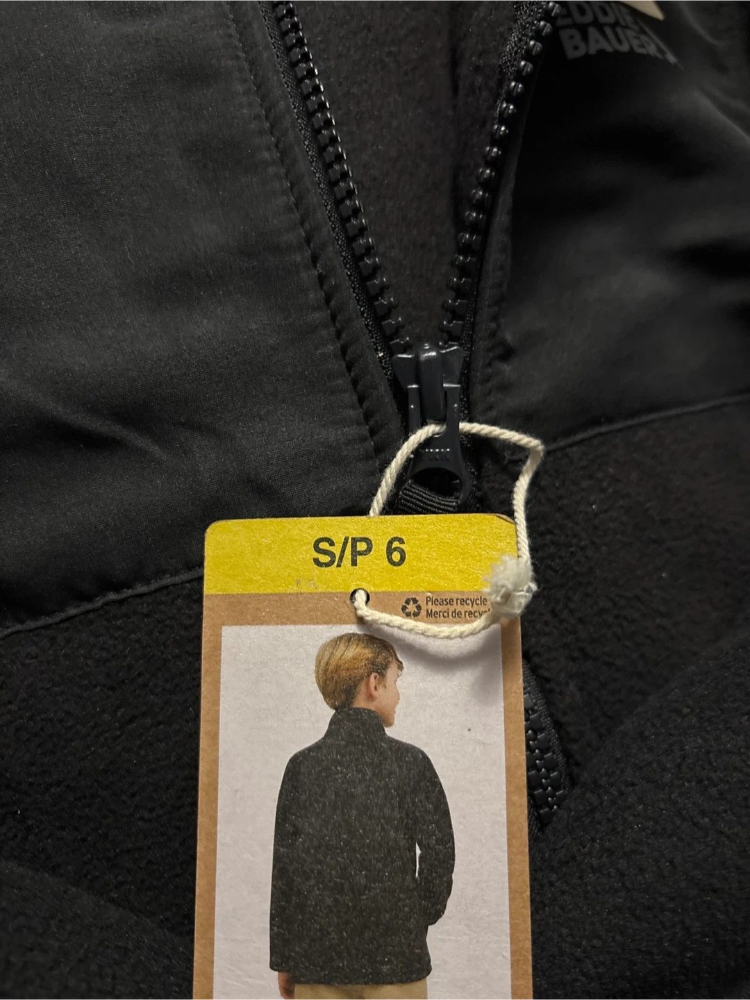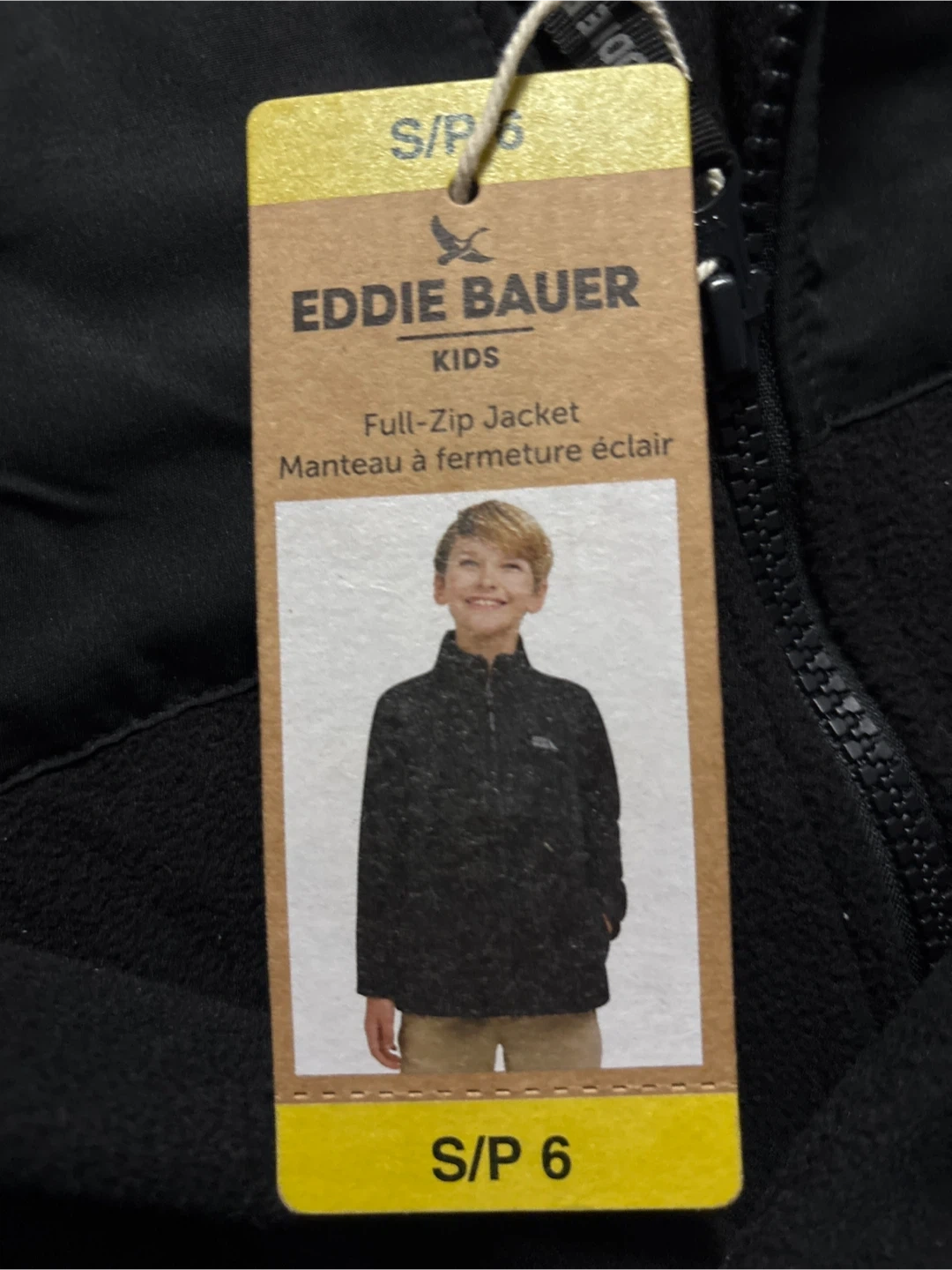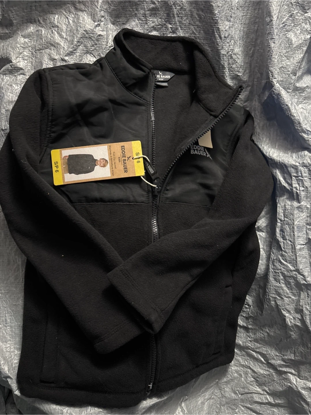 Selling a brand new Eddie Bauer kids full-zip fleece jacket! It's black and a size 6. Perfect for keeping your little one warm and cozy.