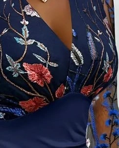 This stunning super chic blue dress bodycon dress is very elegant and stylish and has a very nice and detailed embroidery. The sleeves and the applique flowers are dainty and feminine. Suitable for All Seasons. 95% Polyester, 5% Spandex. Bodycon. Mid Elasticity. Size Large to XL.