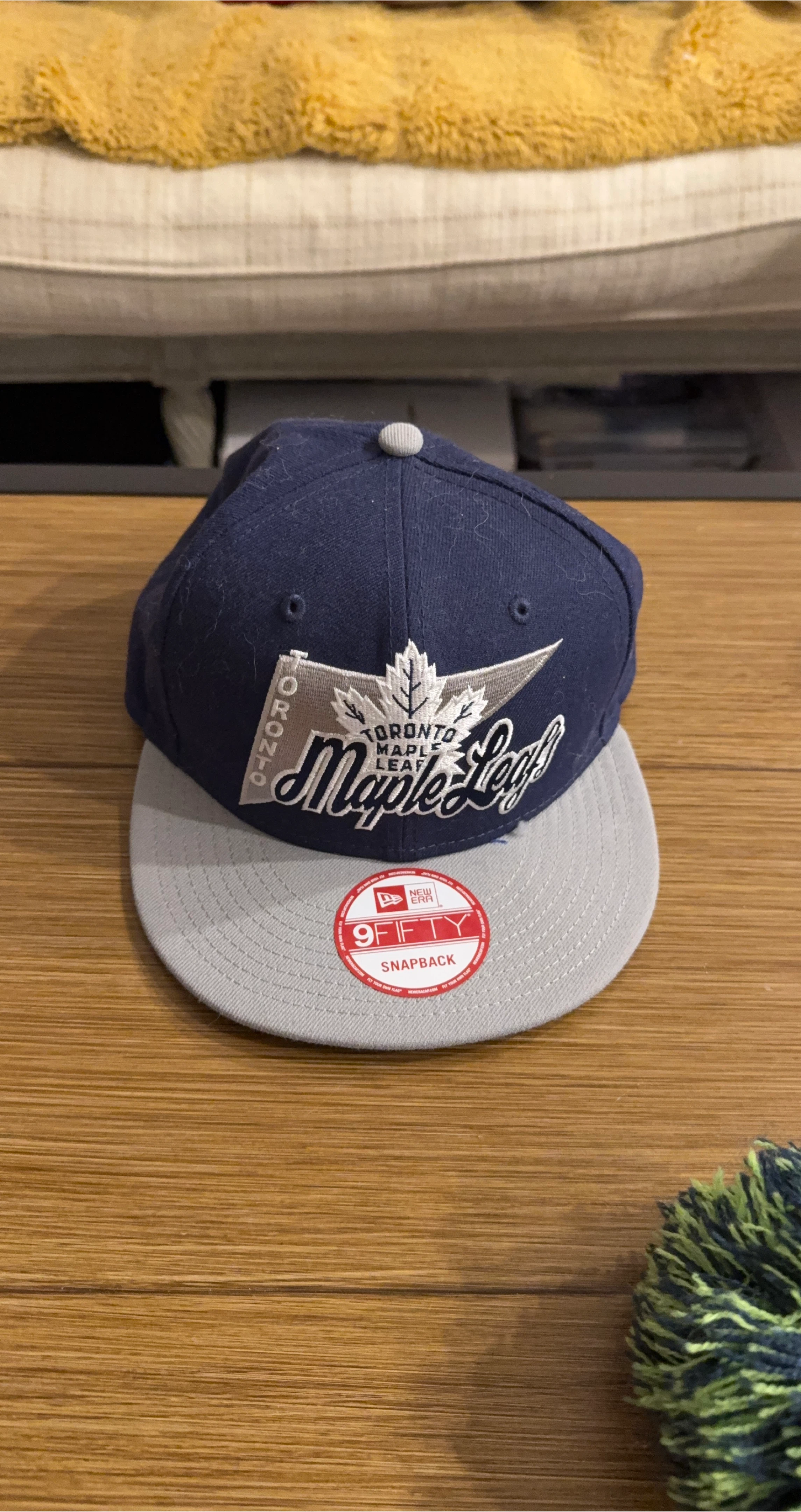 Selling a New Era Toronto Maple Leafs 9FIFTY snapback hat. It's in great shape and ready for a new owner! The hat features the classic Maple Leafs logo and a snapback closure for a comfortable fit
