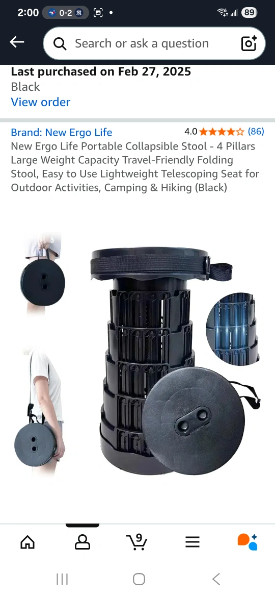 Looking to sell a New Ergo Life Portable Collapsible Stool in black! This stool has a 4-pillar design and is travel-friendly, making it perfect for outdoor activities like camping and hiking. It's designed to be lightweight and easy to use, with a telescoping seat. It was last purchased on Feb 27, 2025!