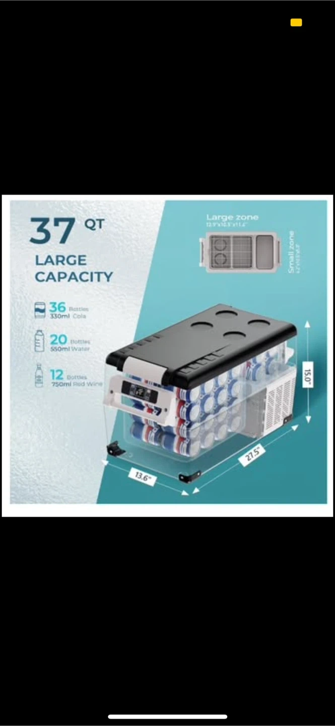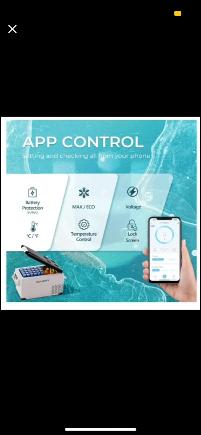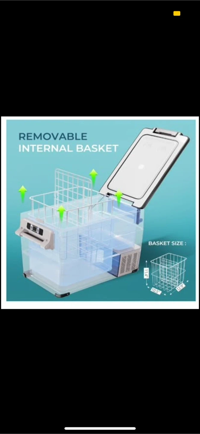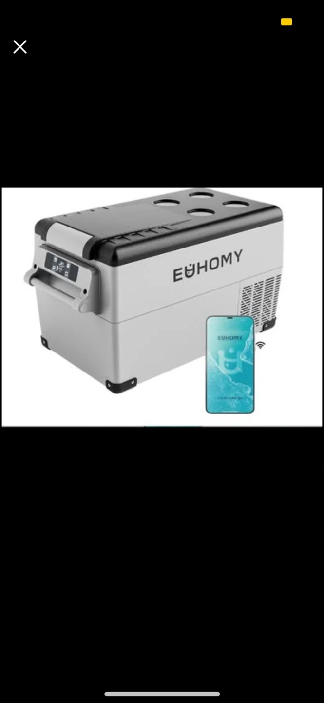 Amazon Price $299 Selling a Euhomy car refrigerator. It features app control, allowing you to set and check settings from your phone. Also, it has a removable internal basket, providing convenient storage options