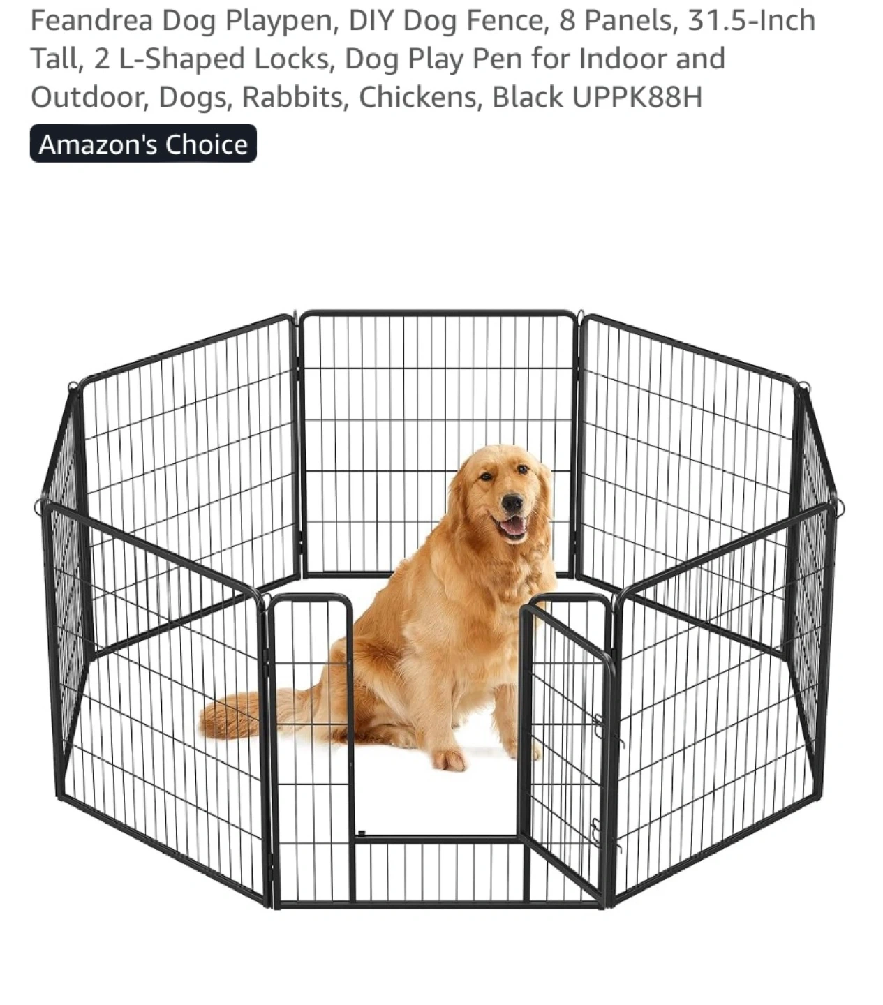 New Feandrea Dog Playpen 8 Panel 31.5” tall Came missing one metal pole but I have replaced it with a similar pole. It is thicker and taller but, fits the connection holes. $70 (retail $130 plus tax) Pickup in Whitby