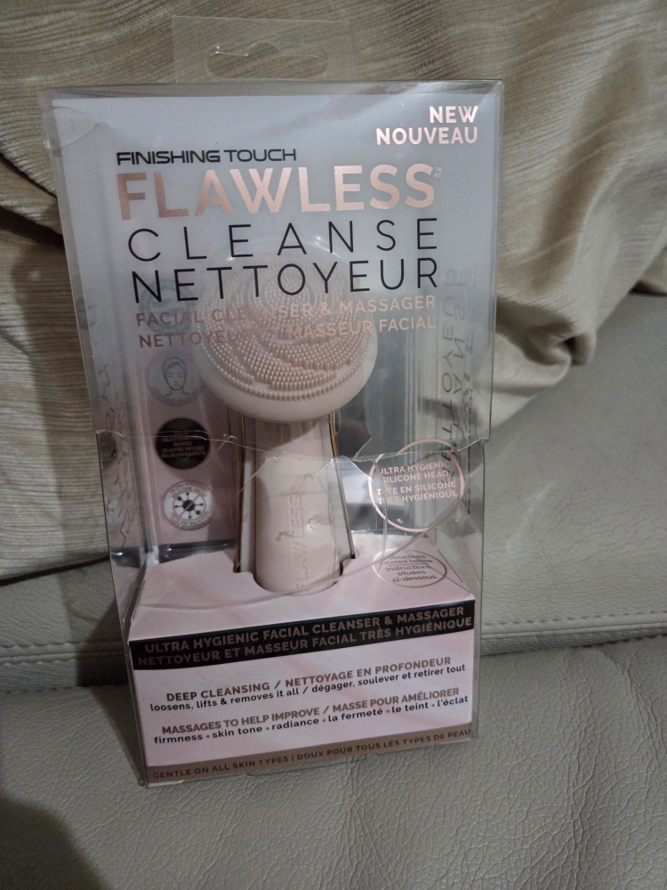 I'm selling a brand new Finishing Touch Flawless Cleanse Facial Cleanser and Massager! It's an ultra hygienic facial cleanser and massager that provides deep cleansing to loosen, lift, and remove impurities. It also massages to help improve firmness, skin tone, and radiance. Gentle on all skin types