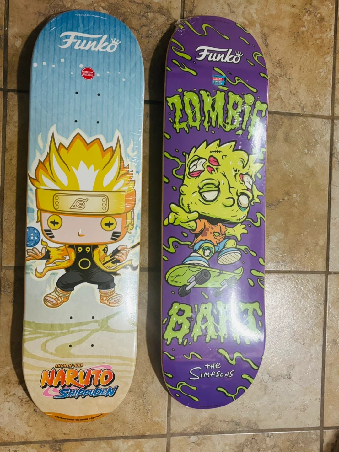 Selling two brand new Funko skateboard decks! One features Naruto Shippuden and the other is a Simpsons Zombie Bait design. Both decks are still sealed in their original packaging. The sticker shows they originally retailed for $99.99 each