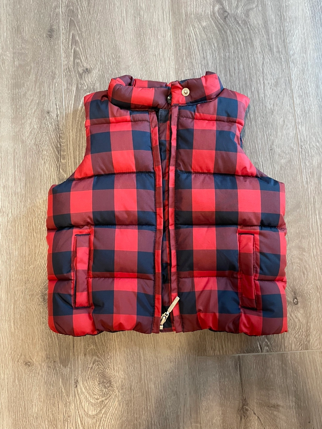 NEW Red and black buffalo plaid puffer vest. Zipper closure. Two front pockets. Great for layering.