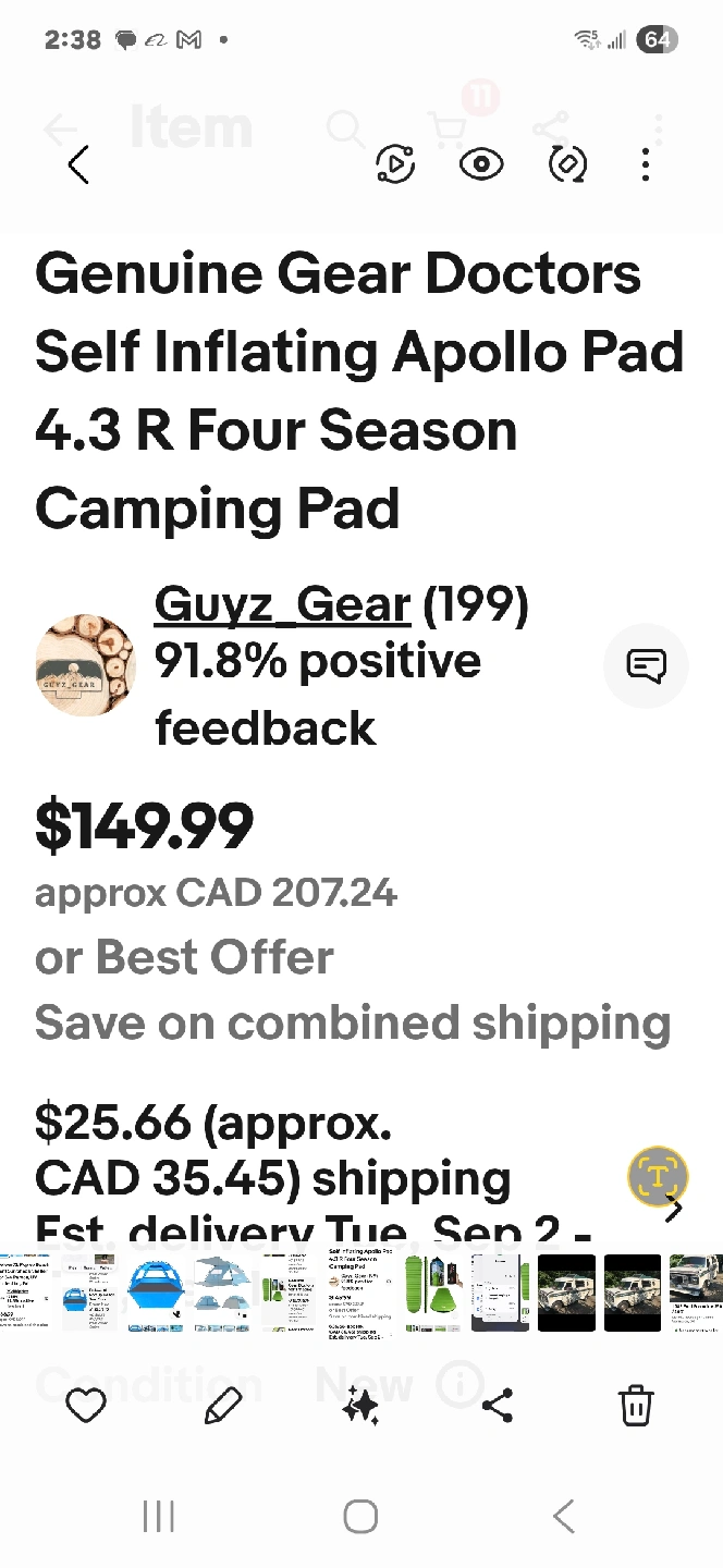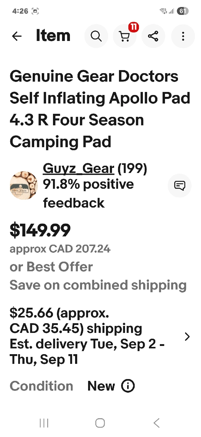 Selling two brand new Gear Doctors Self Inflating Apollo Pad 4.3 R Four Season Camping Pad! This camping pad is perfect for all seasons and is self-inflating for easy setup. Originally bought for $149.99 CAD.new and one regular two hundred and seven $90 and the other $140.