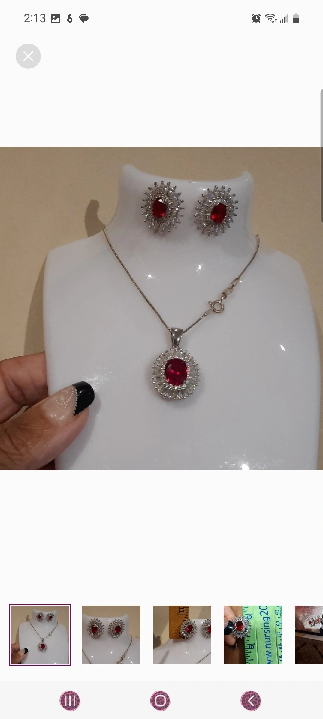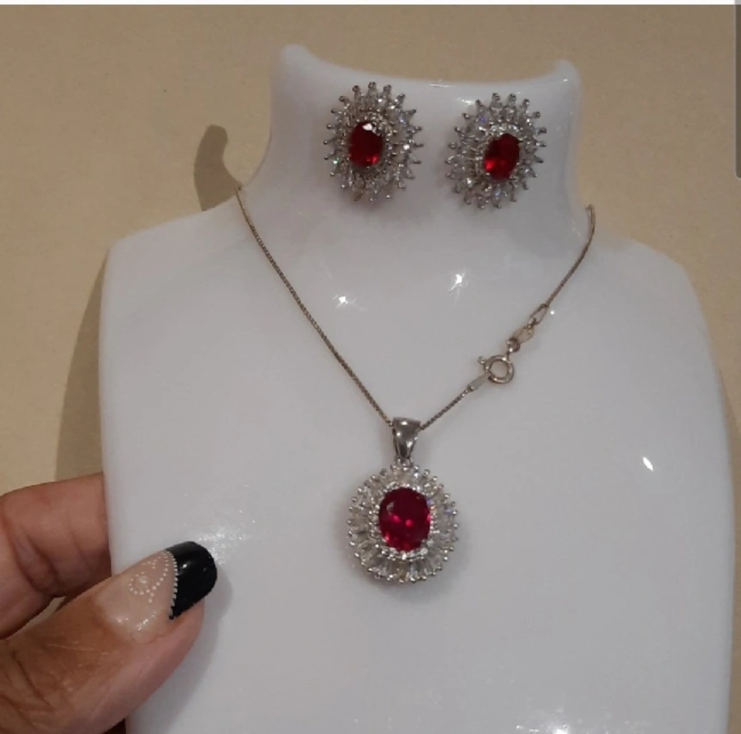 Elegant ruby and CZ earrings solid genuine sterling silver. necklace sold separately