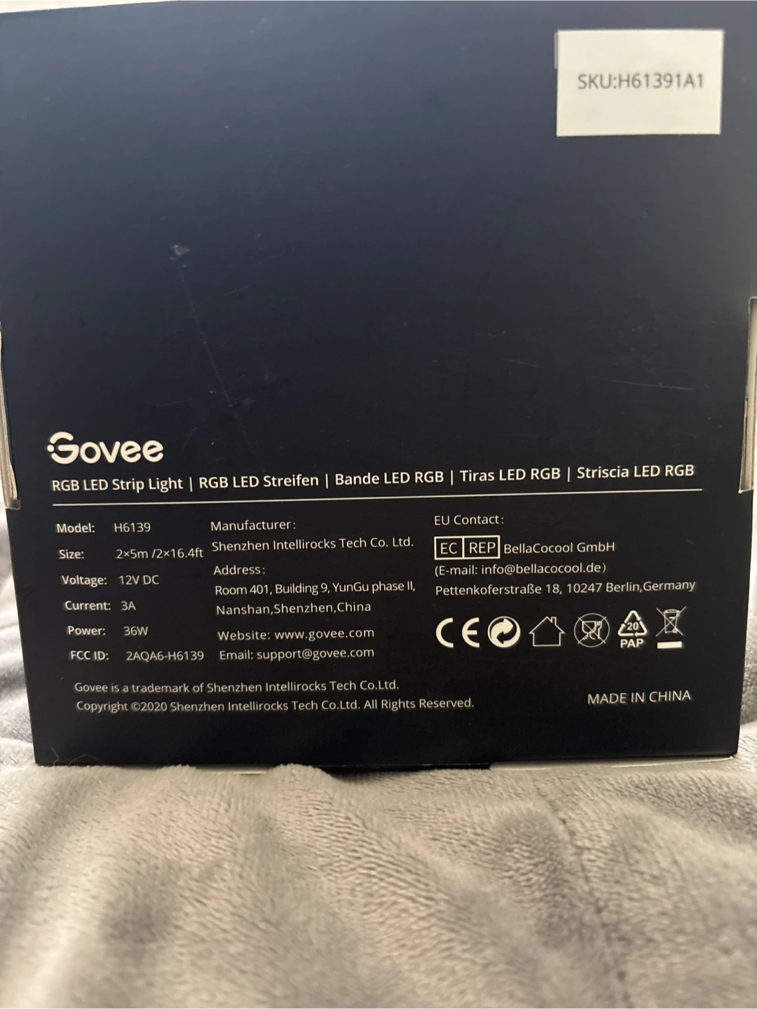 Selling a brand new Govee RGB LED Strip Light! It comes in the original box. Features: - Colorful Lighting - Set Timers - DIY Scenes - Safe To Use - Govee Home App - Remote Control - Adjust Brightness - Music Mode Size: 2 x 5m / 2 x 16.4ft