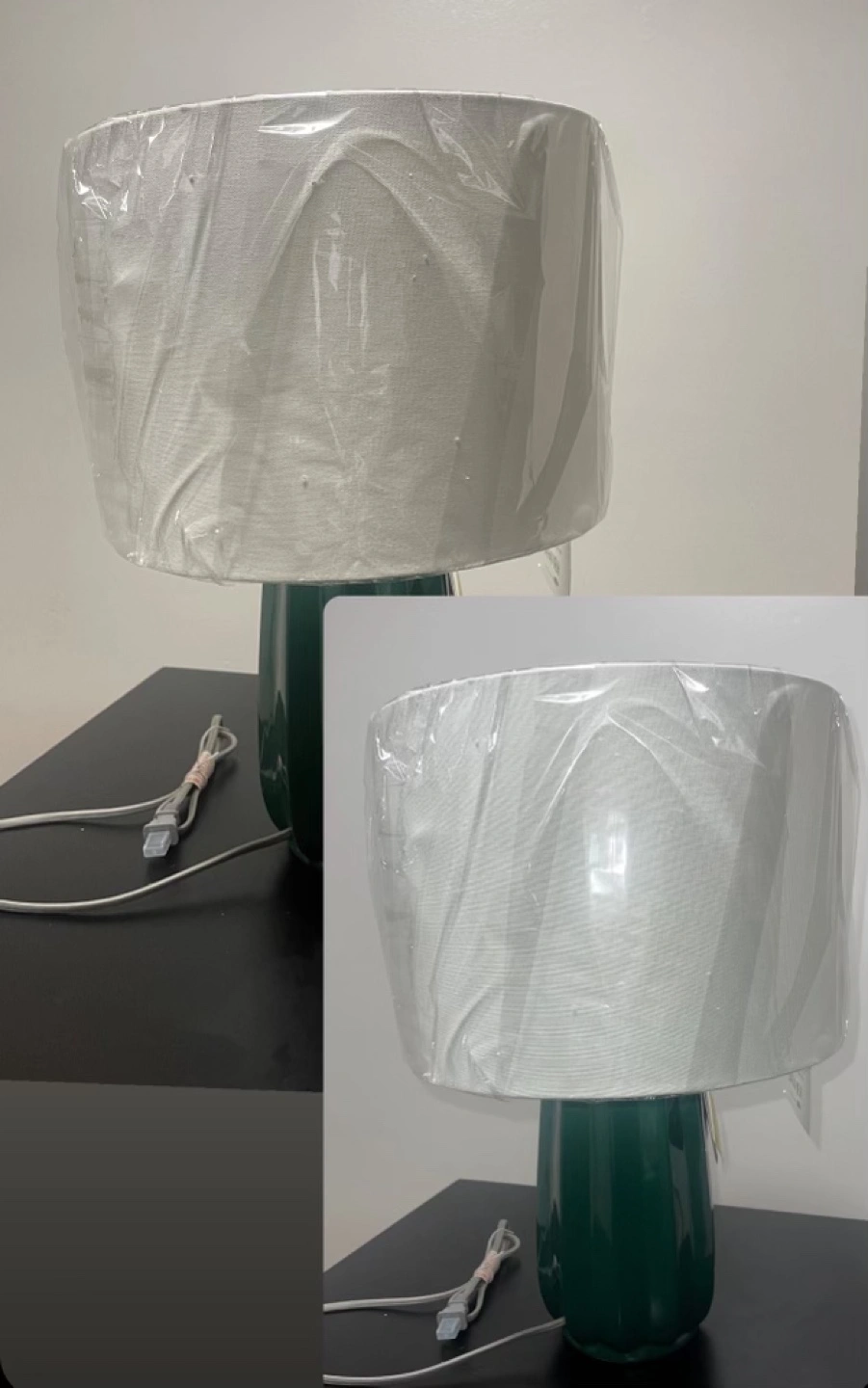 table lamps. Dark green ceramic bases. Off-white fabric shades. Still in original packaging. Grey Baby Playpen with Storage Bag