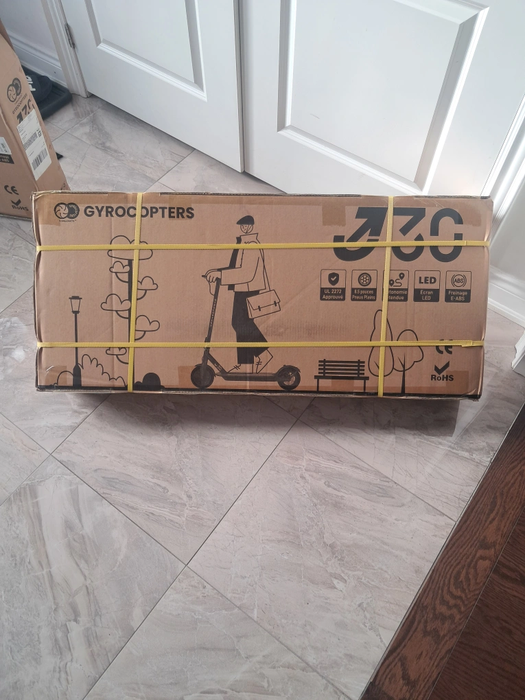 Selling a brand new Gyrocopters J730 electric scooter! It comes in the original box. This scooter features an LED screen and E-ABS braking system. It also has UL 2272 certification and 8.5-inch tires