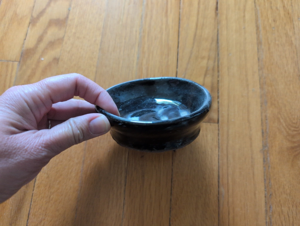 Selling a brand new handmade small black ceramic bowl. It's about 4 inches in diameter and 1.5 inches tall. Perfect for holding small items or as a decorative piece!