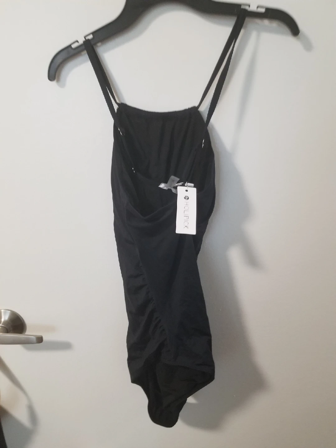 Selling a brand new Holipick swimsuit in black! It still has the tags on it. It's a stylish one-piece that would be perfect for the summer. Size Large