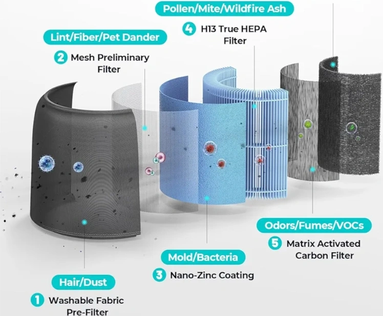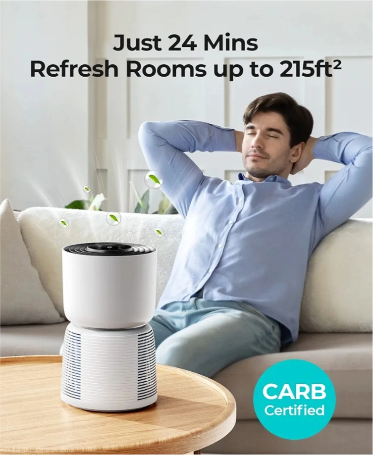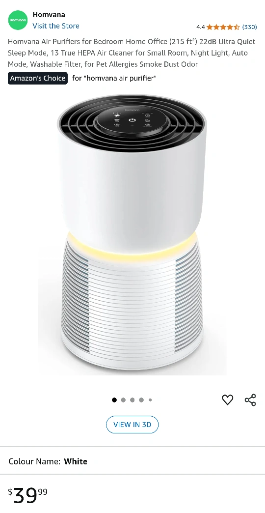 Homvana Air Purifiers for Bedroom Home Office (215 ft2) 22dB Ultra Quiet Sleep Mode, 13 True HEPA Air Cleaner for Small Room, Night Light, Auto Mode, Washable Filter, for Pet Allergies Smoke Dust Odor