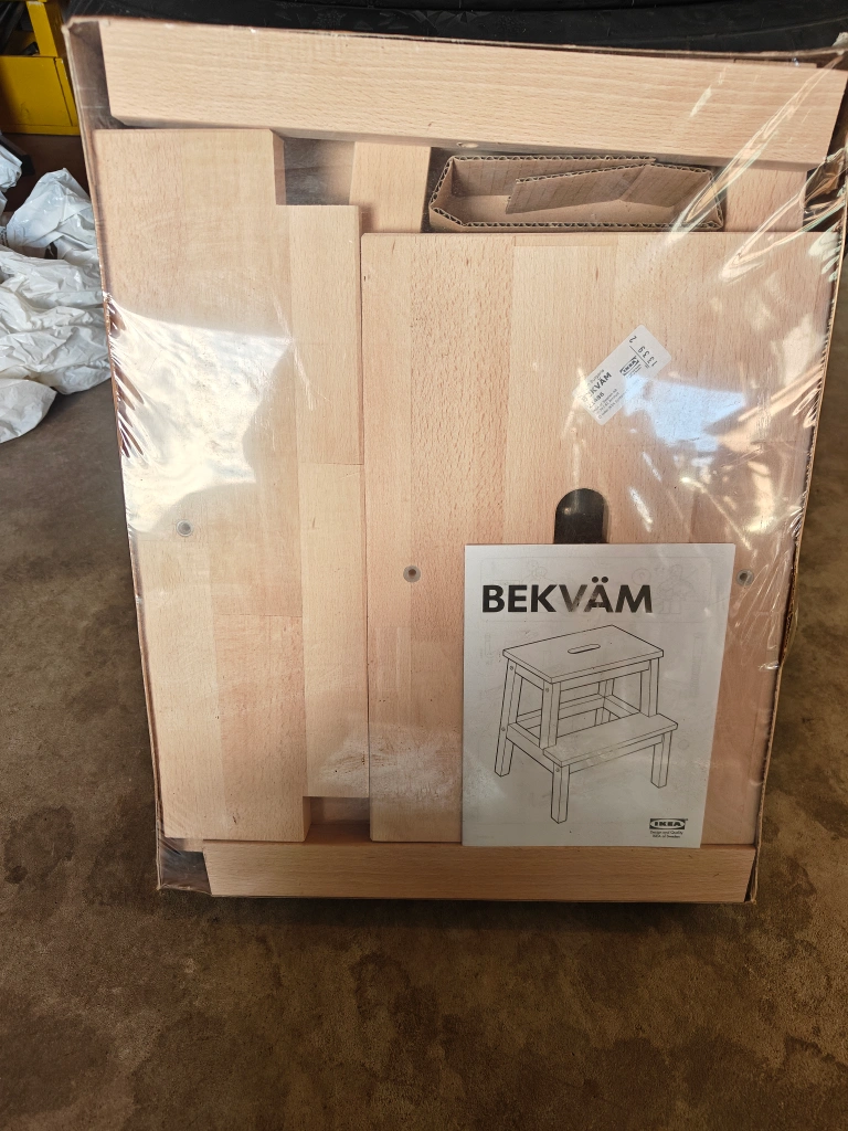 Selling a brand new IKEA BEKVÄM step stool! It's still in its original packaging. Perfect for reaching those high shelves in the kitchen or pantry. Easy to assemble and super handy to have around the house
