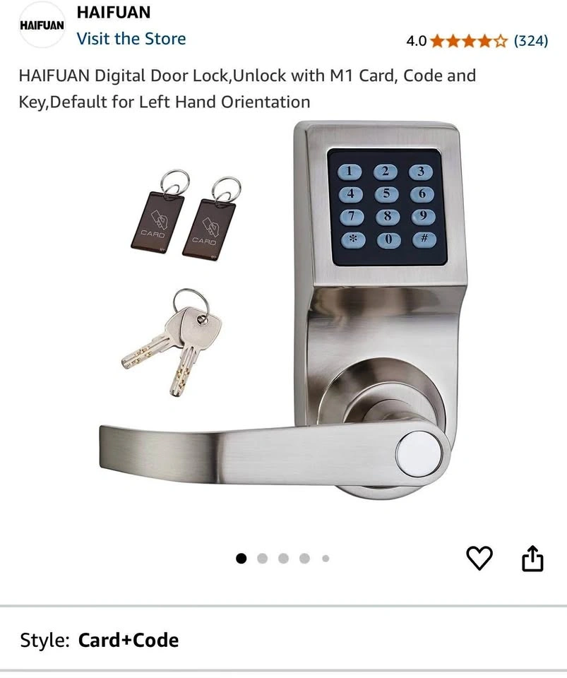 New Haifuan digital door lock. Unlock with M1 Card, Code or Key. Voice Navigation. Laser Cut keys and a Hidden keyhole. It allows for 900 Total Possible Users, Easy Right or Left Handle Switching, Default for Left Hand. Max of 100 Codes, 800 Cards users. Stay Unlocked Mode Available. Keypad illumination, Standard Latch(2 3/8" 60mm and 2 3/4" 70mm adjustable). 4 AA batteries required (not included). Package Includes 2 M1 Cards, and 2 Metal Keys. Pick up - Courtice. Please check my other listings.