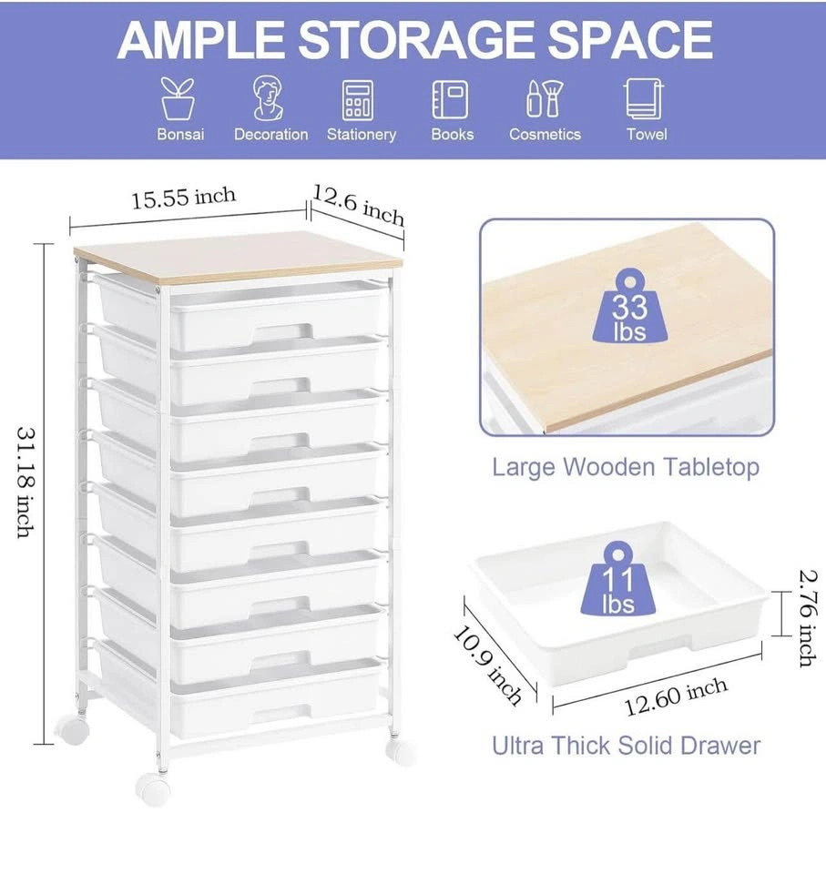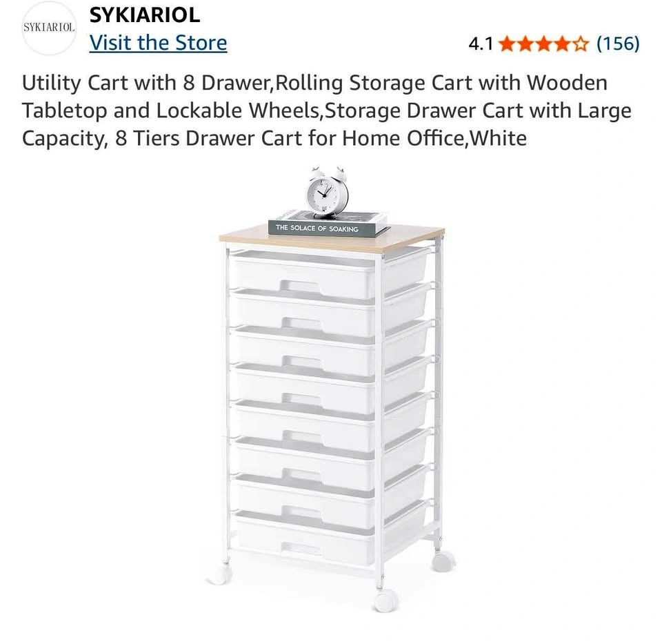 New in box Sykiariol rolling utility cart with 8 drawers, tabletop and lockable wheels. The overall size of this cart is 15.55"D x 12.60"W x 25.47"H. Drawer dimension is 13.98"D x 12.24"W x 2.76"H. There are different pink color drawers for to store and classifying your stuff to keep them tidy and clean. Slide-out drawer design, with smooth slide track and ergonomic handles, easy to open or close. Storage drawer cart with wooden table top allows you to put plants, cricut maker, printer and other decorations. Slide-out drawers are made of durable plastic material, which also boasts great durability. Holds 33 pounds on the top plate and 11 pounds per drawer. The utility cart with drawer boasts a sturdy and durable powder-coated steel frame with water and rust resistance ensures a sturdy construction and is built to last. Four universal wheels can swivel 360 degrees and help you move it easily. Locking wheels provide maneuverability and stability when needed. Smooth wheels, scratches and noise during movement can be effectively avoided. Perfect for living room, bedroom, office, sewing room, craft room, classrooms, dorm, art studio or homework station. Great to storage tools, sewing supplies, embellishments, punches, stamps, paper, scrapbooking, school supplies, toys, stationery, office supplies, art and craft materials and beauty products. Pick up - Courtice