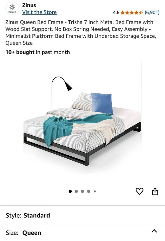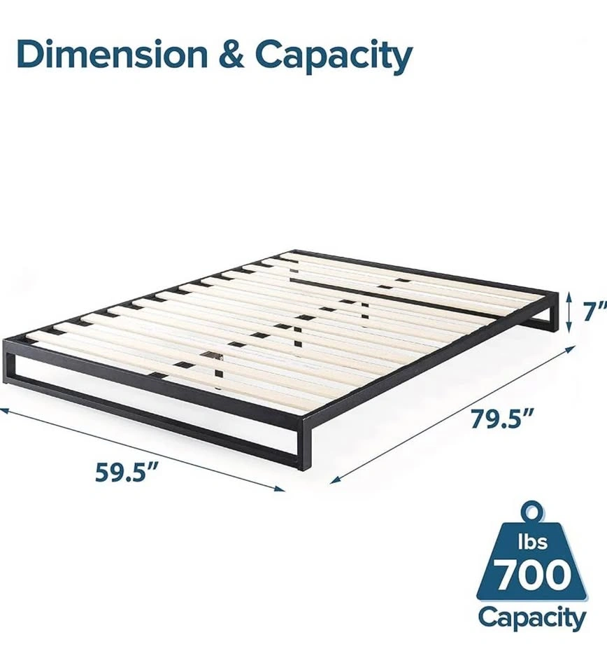 New in box Zinus Trisha queen-size metal bed frame. Minimalist look with maximum support. Steel frame supports your mattress. Product Dimensions :79.5 x 59.5 x 7.0 inches. Maximum Weight Recommendation : 700 Pounds Low profile (7-inch platform height). No box spring needed – wood slats support latex, memory foam or spring mattress. Easy assembly with all parts, tools and instructions included. Worry-free 5 year limited warranty included; mattress sold separately. Pick up - Courtice. Please check my other listings!