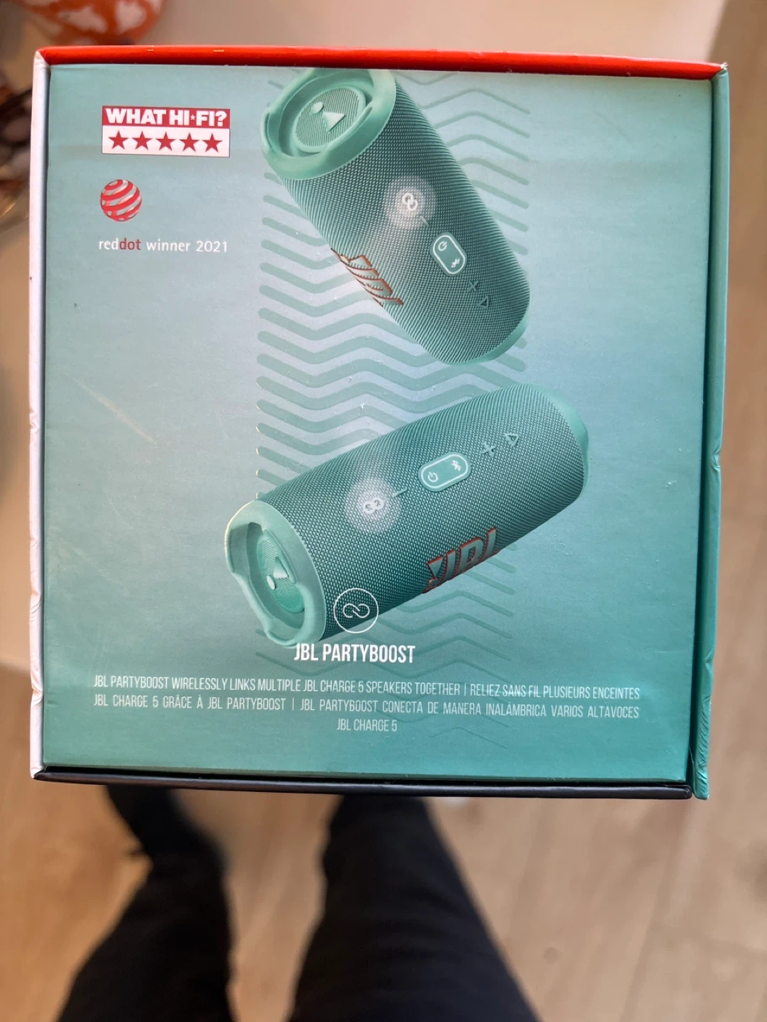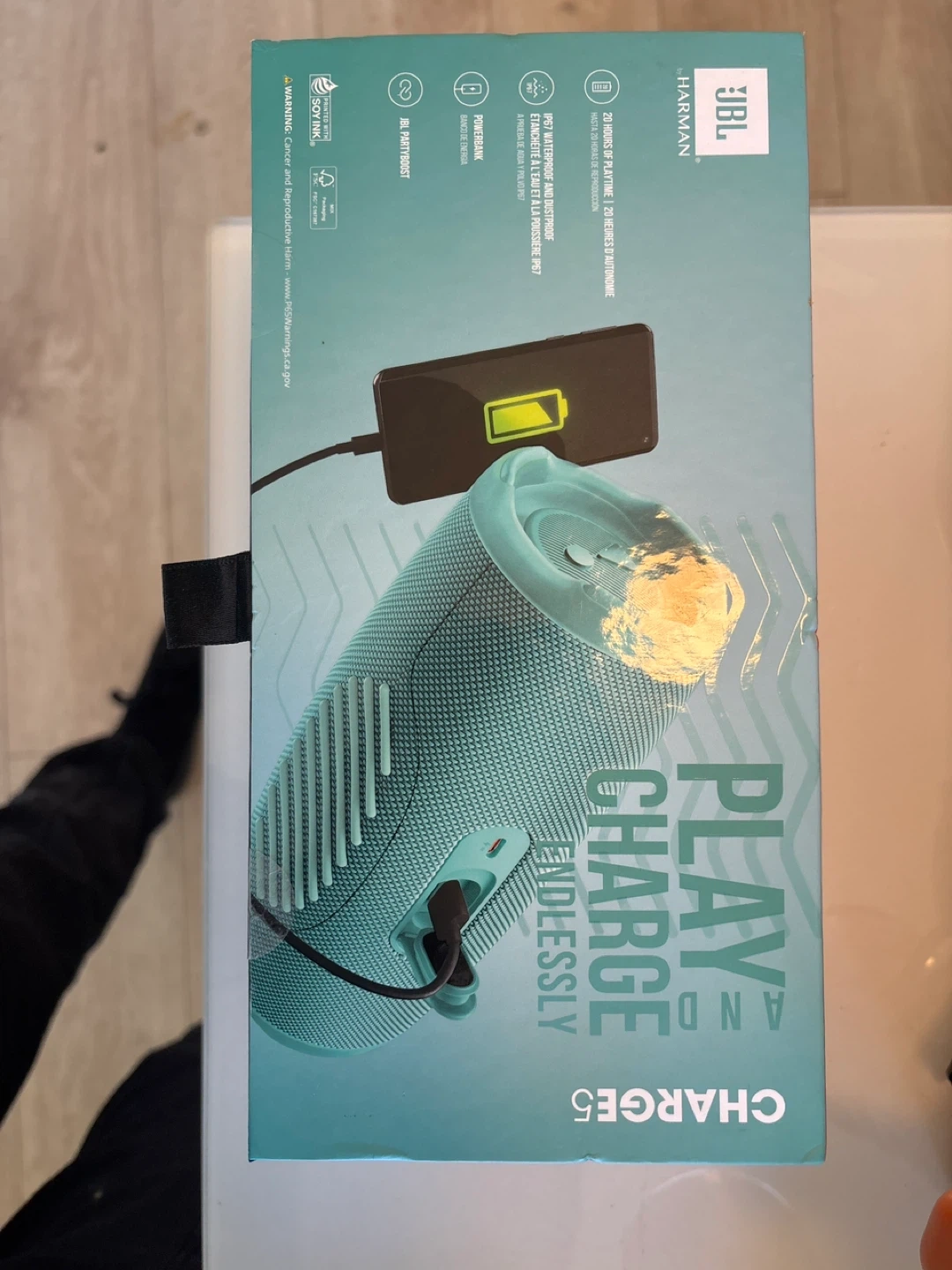 Selling a brand new JBL Charge 5 in teal! It's still in its original packaging. Enjoy up to 20 hours of playtime with its powerful sound and deep bass. Plus, it's waterproof and dustproof, so you can take it anywhere. It also features JBL PartyBoost, allowing you to wirelessly link multiple JBL Charge 5 speakers together for an even bigger sound