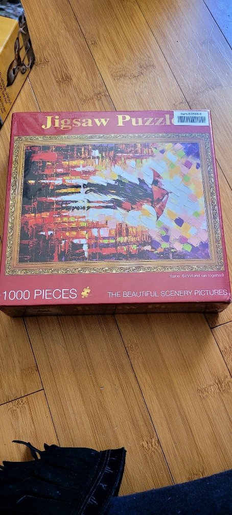 Selling a 1000-piece jigsaw puzzle. The puzzle depicts a beautiful scenery picture of a couple with an umbrella in the rain