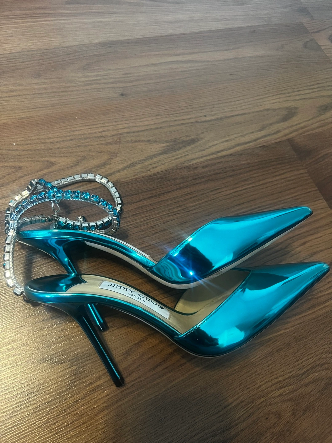 Brand new. Rare metallic blue leather with stunning blue gem stones. Purchased from Boutique in 2024 Negotiable. Ideal for New Year’s soirée, events, birthday party, wedding, bridesmaid, celebrations, sweet 16, holiday gift idea. Pick up or willing to meet in GTA Without original box but will give you a DIOR box if required. Missing gem and charm at back, unnoticeable ( price adjusted accordingly)
