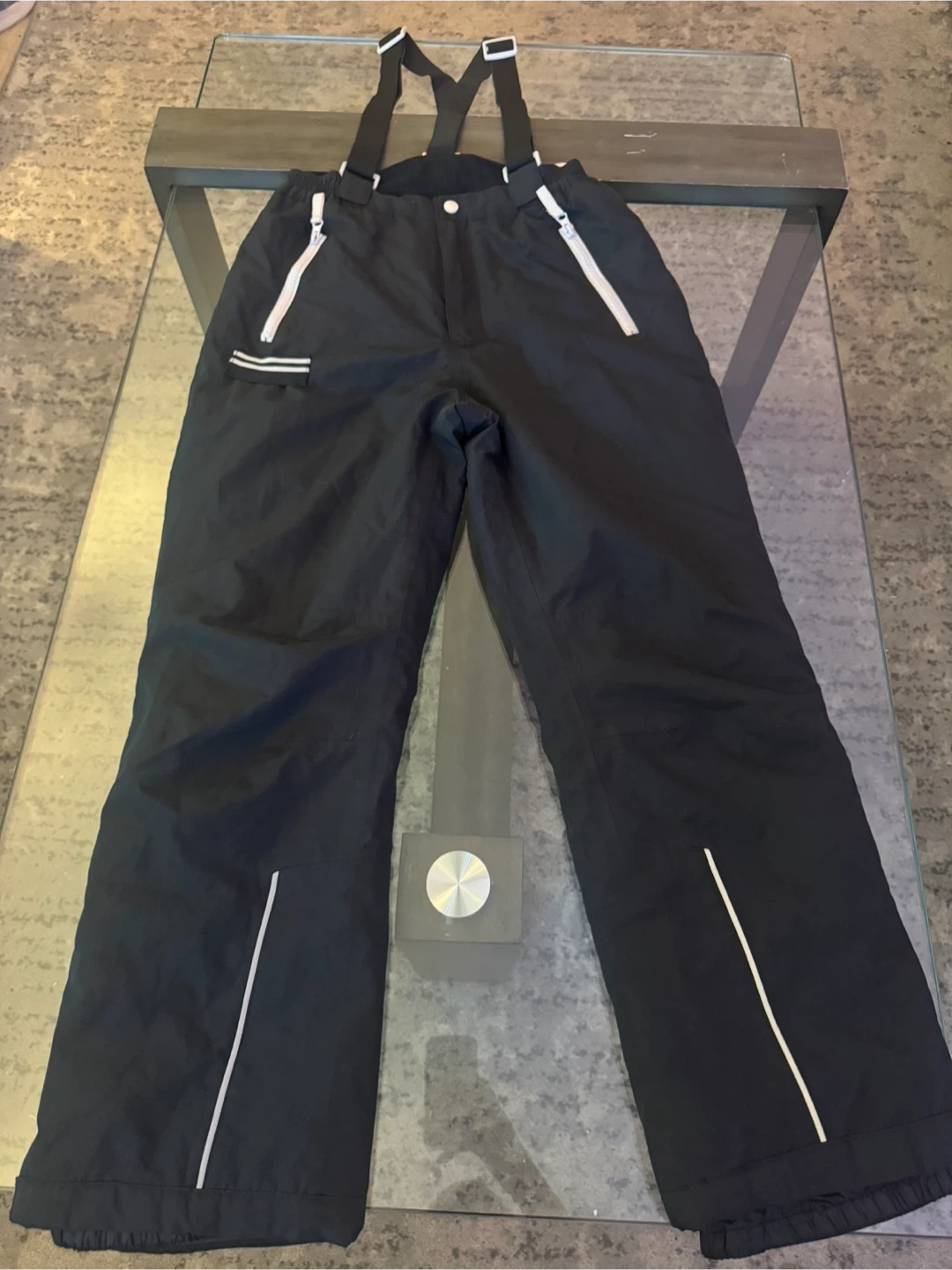 Selling a pair of black snow pants with suspenders. They are new, never used and ready for the slopes! Perfect for staying warm and dry during winter activities. Bonprix Collection. Size 9-10 YRS