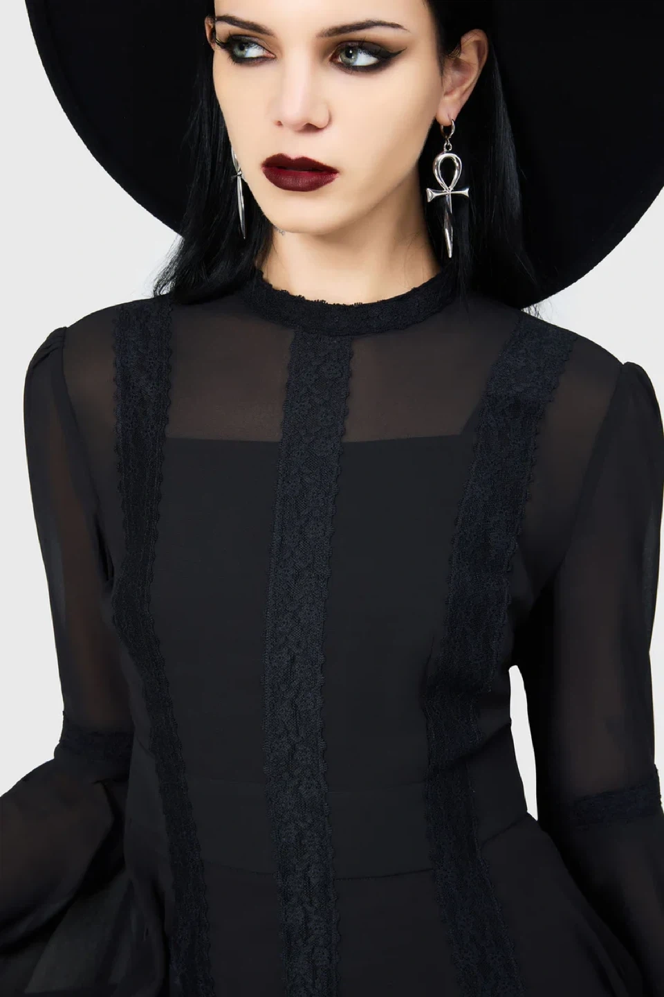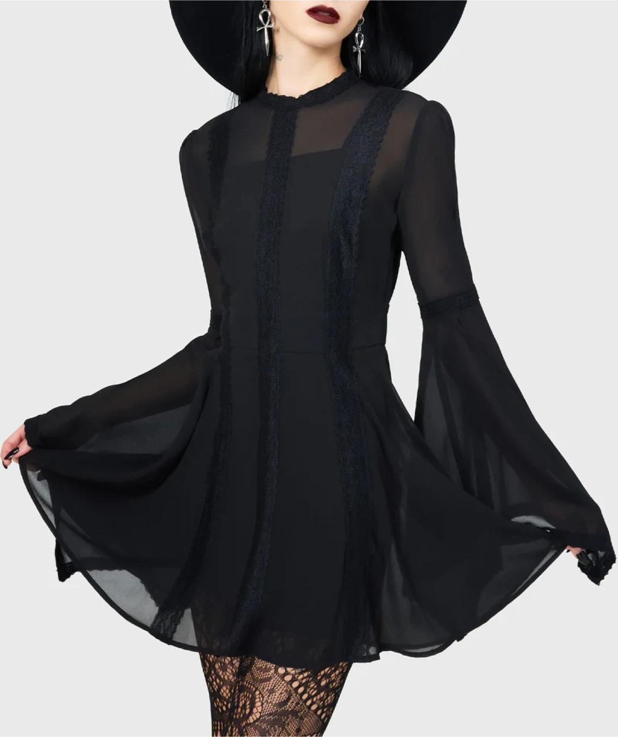 NEW Killstar Gothic Witchy Black Long Sleeve Mini Dress Small