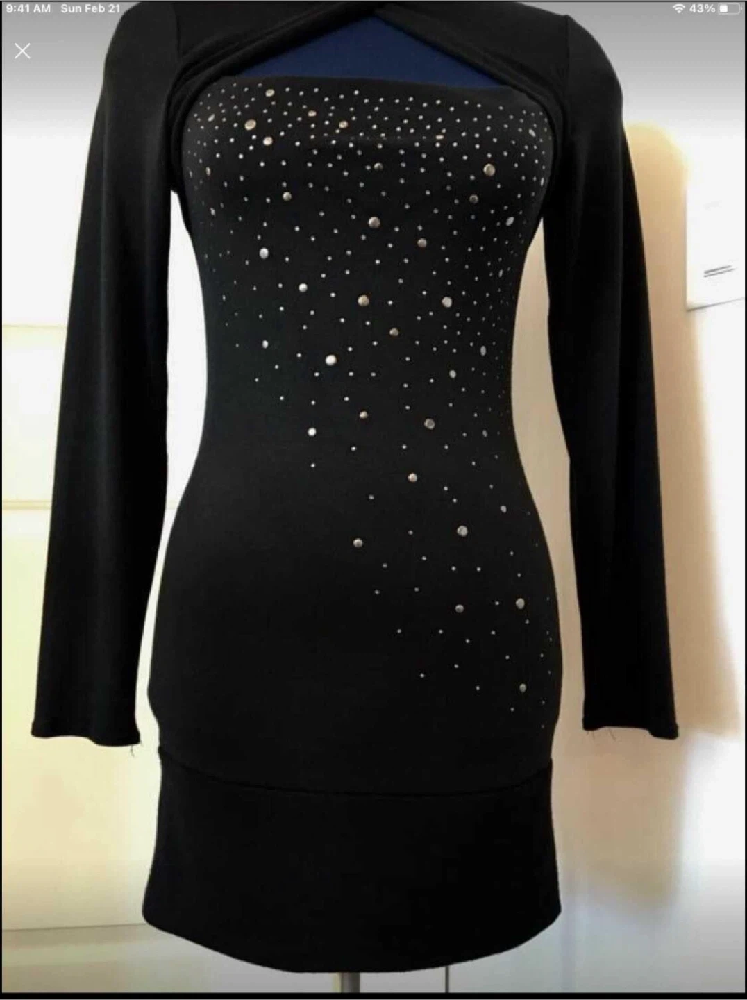 Never worn Selling a stylish black long sleeve dress! It's a size 6/8 and has a unique design with silver embellishments on the front. Perfect for a night out or a special occasion