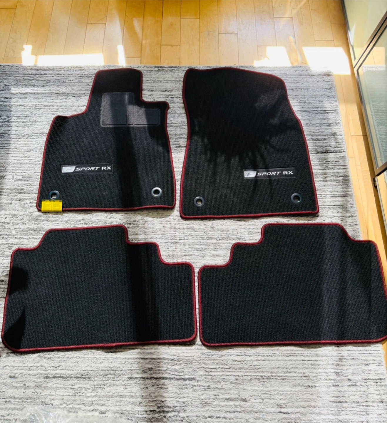 Selling a set of New Lexus RX 350 Sport car mats. They are black with a red trim and have never been used - only opened to take the picture. Perfect for keeping your car clean and stylish! #car #auto #accessories #mats #lexus