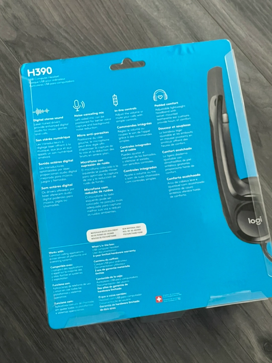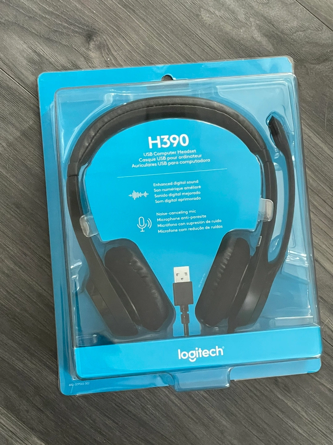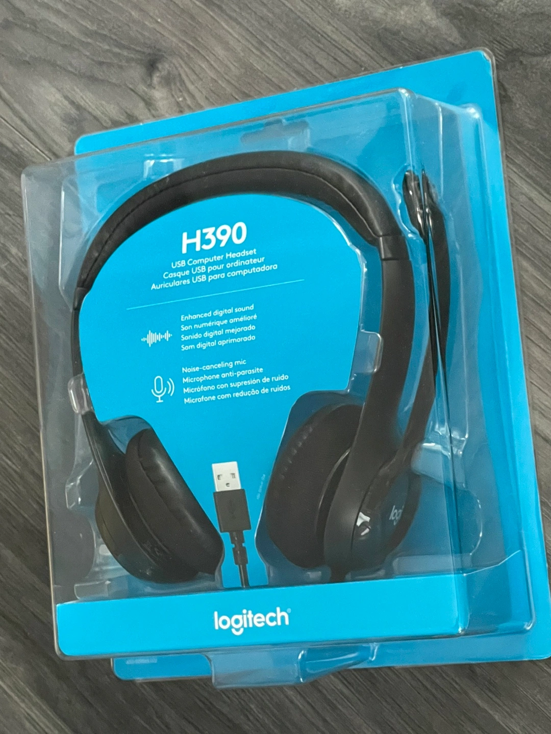 Selling a brand new Logitech H390 USB computer headset! It features enhanced digital sound, a noise-cancelling mic, and in-line controls for adjusting volume or muting calls. The padded comfort and adjustable light headband make it great for long use.