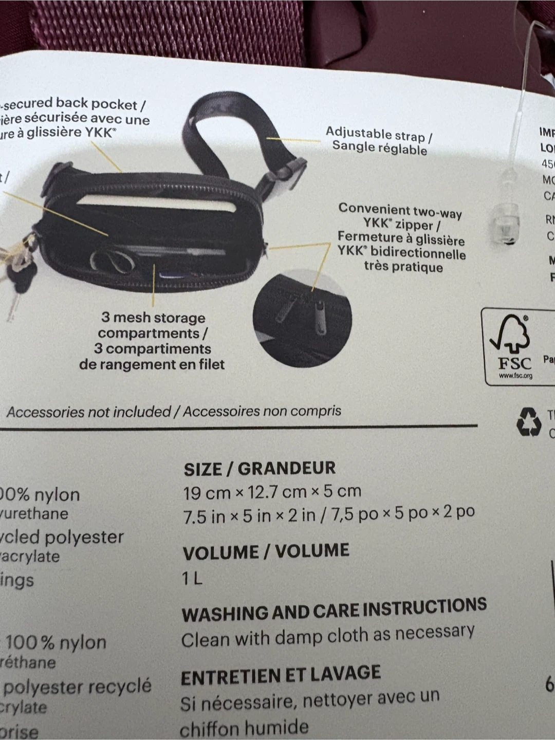 Brand new Lole unisex belt bag, one size! It features an adjustable strap and a convenient two-way YKK zipper. Includes 3 mesh storage compartments. Dimensions are 19 cm x 12.7 cm x 5 cm (7.5 in x 5 in x 2 in). Clean with a damp cloth as necessary