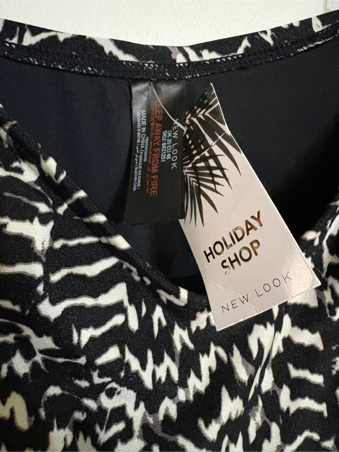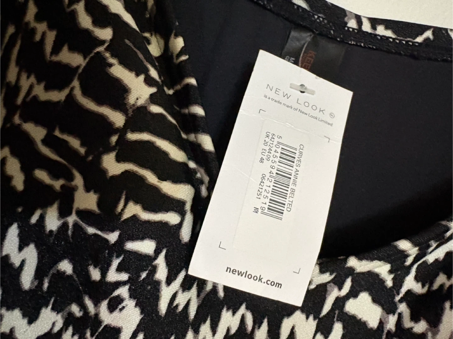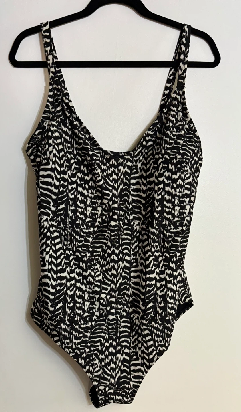 Selling a New Look Curves Annie Belted swimsuit. It's a size 18 and features a stylish black and white pattern. Perfect for your next trip to the beach or pool! New with tags, missing the belt.