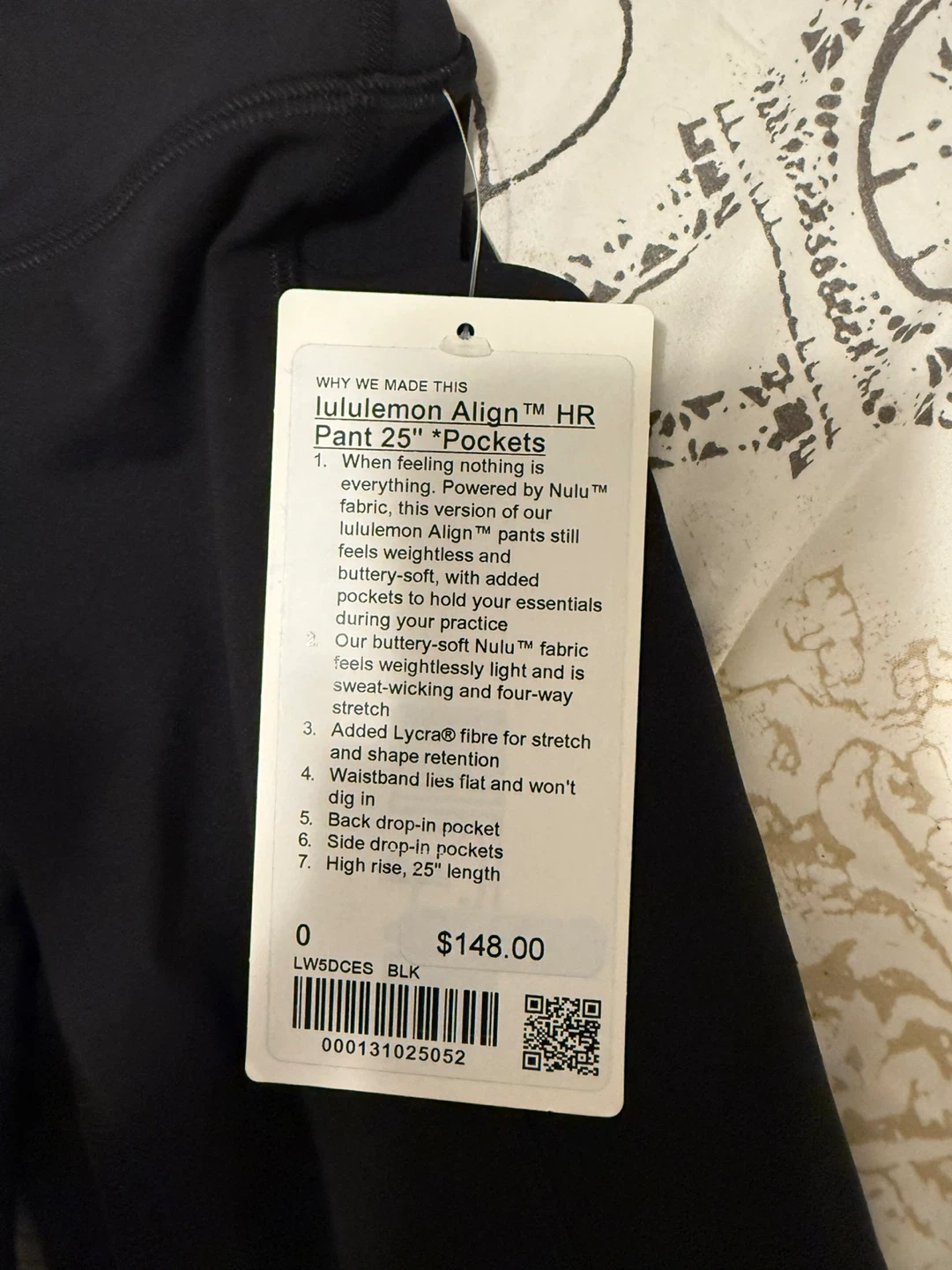 New Lululemon Align HR Pant 25" with Pockets - Size 0