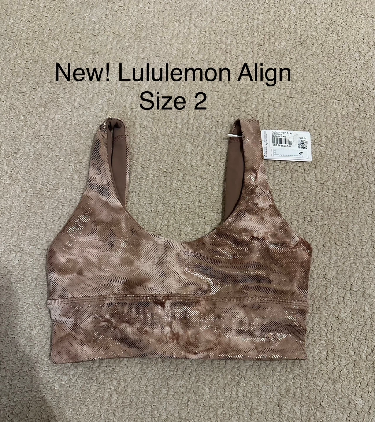 This is a brand new Lululemon Align tank top in size 2! It's in excellent condition and ready for a new home. The colour is a beautiful neutral with a subtle pattern. Perfect for yoga, workouts, or just lounging around Brand new with tag!