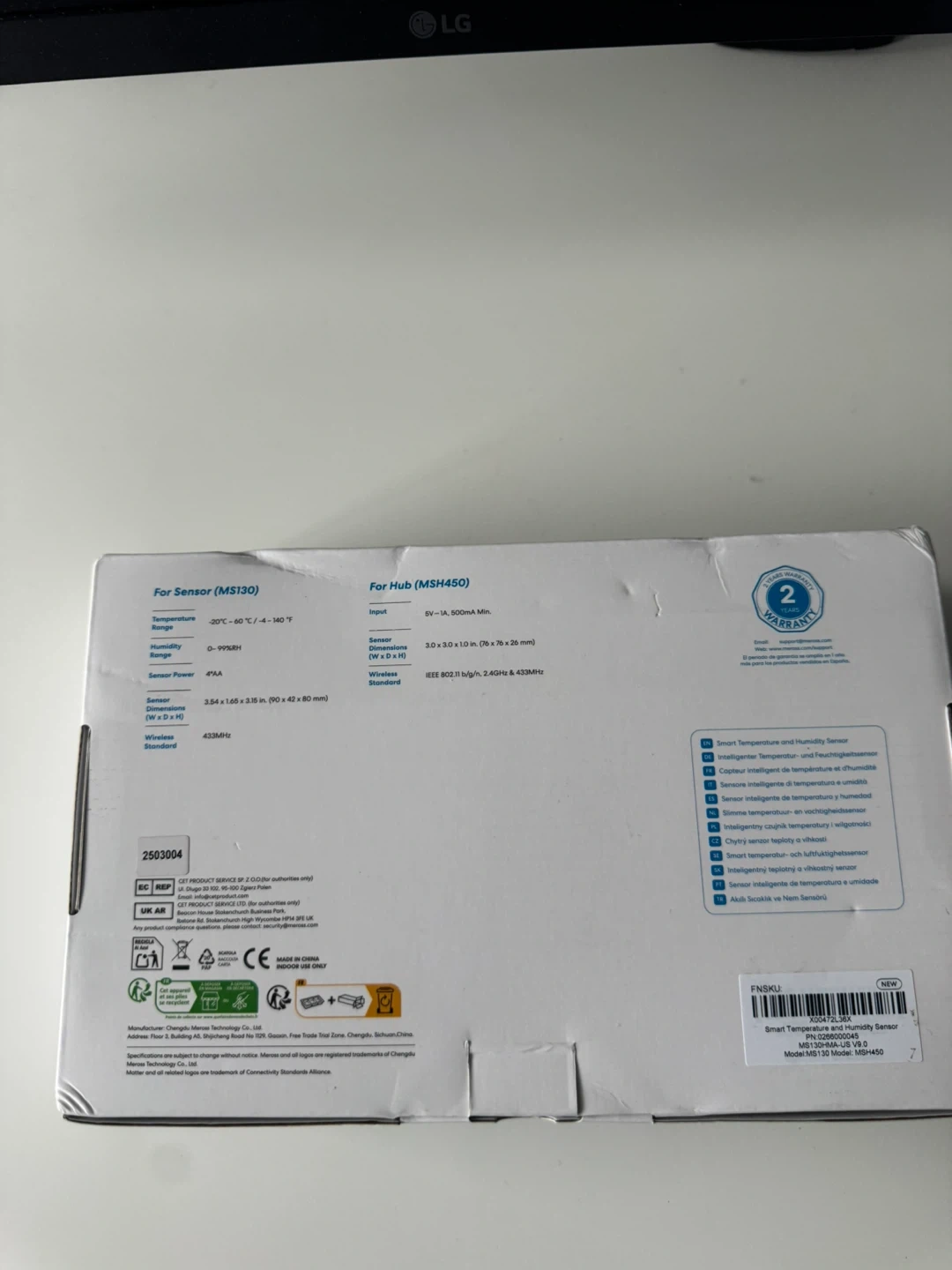 Brand new, never used bought for $80 Works with Apple HomeKit, Amazon Alexa, Google Assistant, and SmartThings. Data-rich: Not only supports temperature, humidity, and light detection, but also allows you to use the Meross app to view dew point temperature, saturated vapor pressure difference, and other data. Accurate Detection: Built-in fourth-generation Swiss-made high-precision sensors. Remote Monitoring: Monitor ambient temperature and humidity changes anytime and anywhere via your cellphone. Extra Large Screen: a 3.7-inch large screen that can display temperature, humidity, light, time, date, and other information simultaneously. Real-time Alert Notifications: Receive instant notifications via the Meross app when data values such as temperature and humidity exceed preset thresholds. Customizable Buttons: Two physical buttons are designed on the top of the device. You can set the functions of the buttons through the Meross app to link to Meross products, e.g., press the button to turn off the MSL120. Device Automation: Set temperature and humidity conditions to trigger Meross device automation, such as switching plugs, lights, and switches on and off. Vibration-Triggered Backlighting: The backlighting can be triggered by tapping the device or the table where it is placed. Long Battery Life: Includes 4 AA batteries, with a lifespan of up to 3 years under regular use. 2 Years of Data Storage and Export: Use the Meross app to view and export data from the past 2 years. Multi-Scenario Use: Can be placed in the living room, bedroom, basement, baby’s room, wine cellar, plant stand, greenhouse, and other locations to monitor temperature, humidity, and other data at any time.