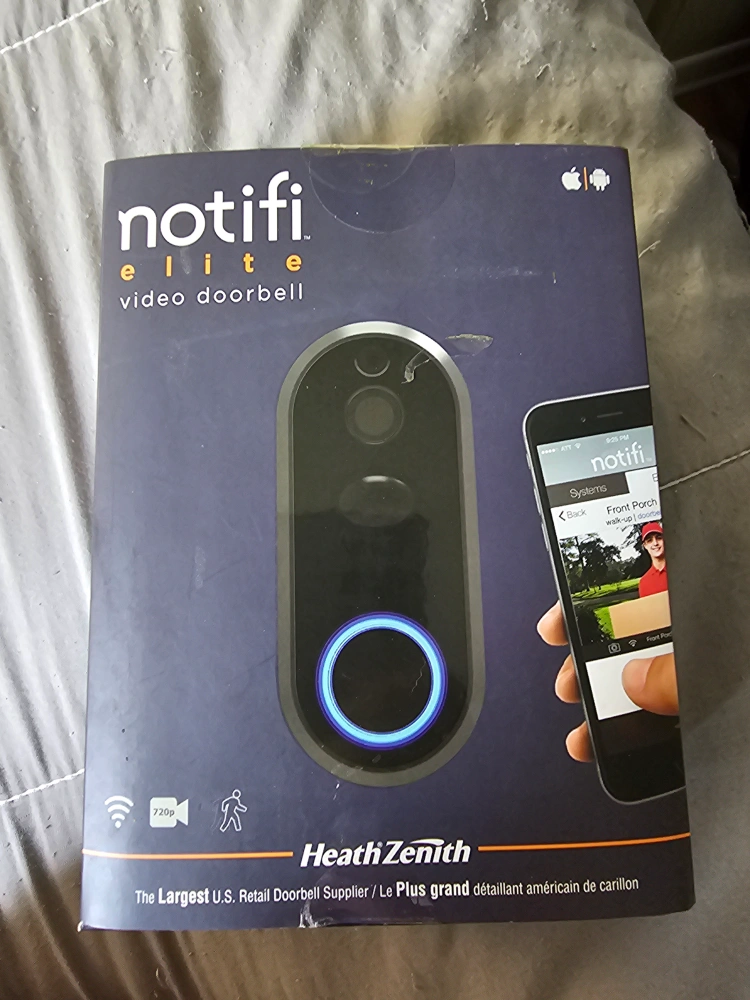 Selling a brand new Notifi Elite video doorbell by Heath Zenith! It's still in its original box and includes all components and accessories. This doorbell provides 720p video and is compatible with Apple systems. A great addition to any home for added security and convenience