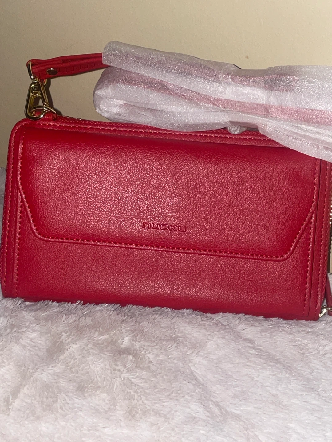 Selling a brand new Nucoku wallet! It's a vibrant red and comes with a handy strap. Perfect for keeping your essentials organized and adding a pop of colour to your outfit