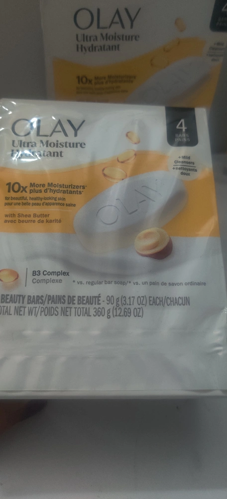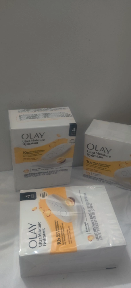 I'm selling 3 new pack of Olay Ultra Moisture Hydratant beauty bars. Each pack comes with 4 bars, each 90g (3.17 oz), for a total net weight of 360g (12.69 oz). These bars are designed for beautiful, healthy-looking skin and contain 10x more moisturizers, plus d'hydratants, with shea butter.