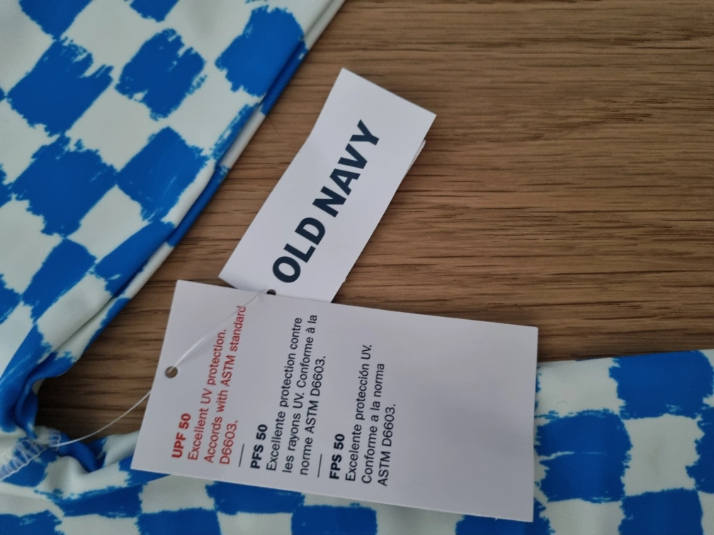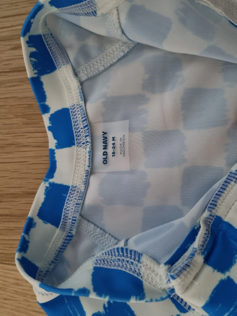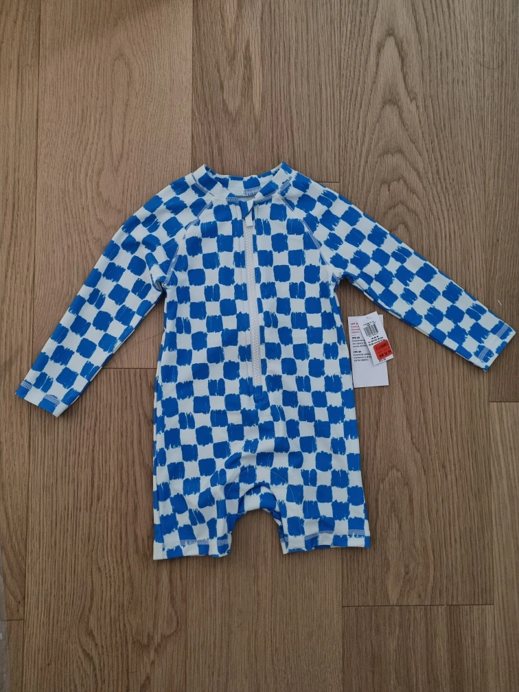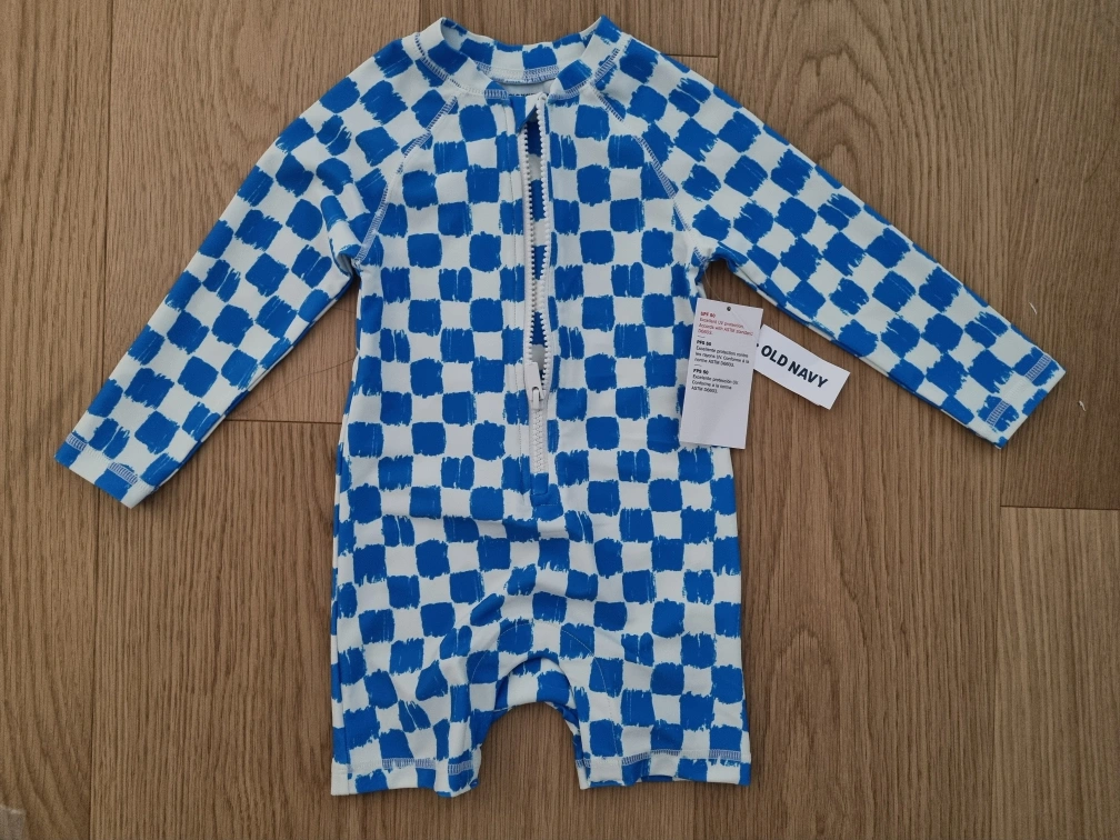This Old Navy baby swimsuit is brand new with tags! It features a cute blue and white checkered pattern and is size 18-24 months. Perfect for keeping your little one protected from the sun with its UPF 50.