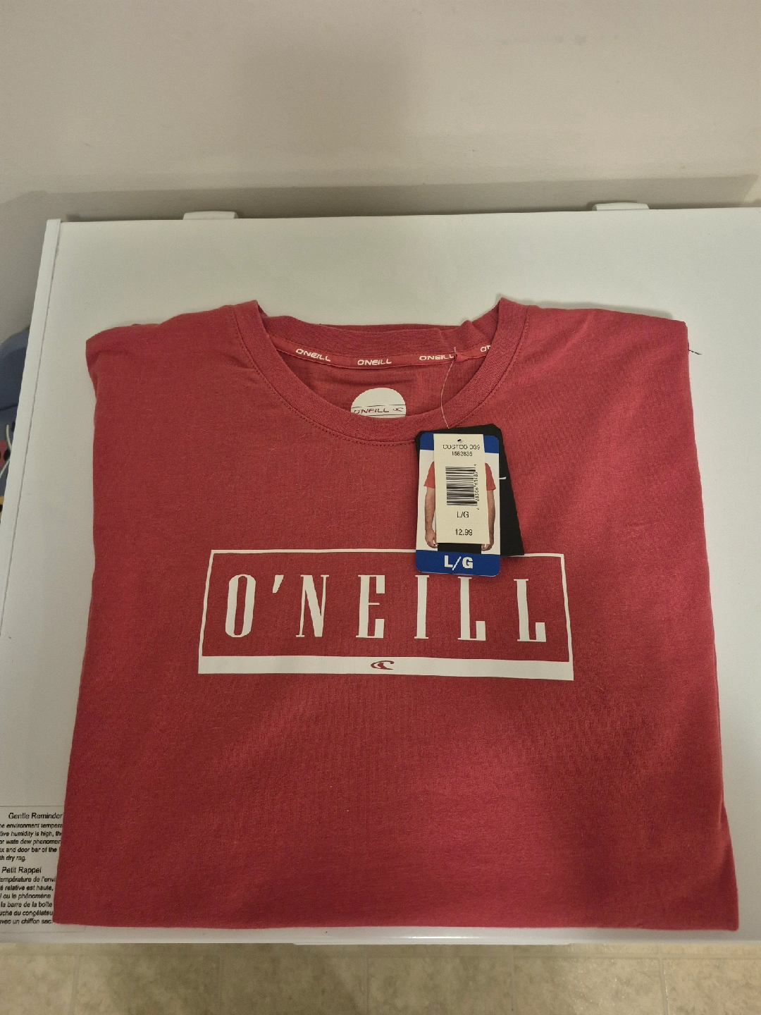 Selling a brand new O'Neill t-shirt! It's a size large and has a nice, casual fit. The colour is a muted red, and the O'Neill logo is printed across the chest. Perfect for everyday wear! Curbside pickup M-Sat 5pm-9pm Or Delivery within London for an extra $5!