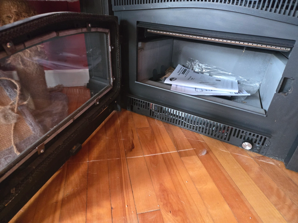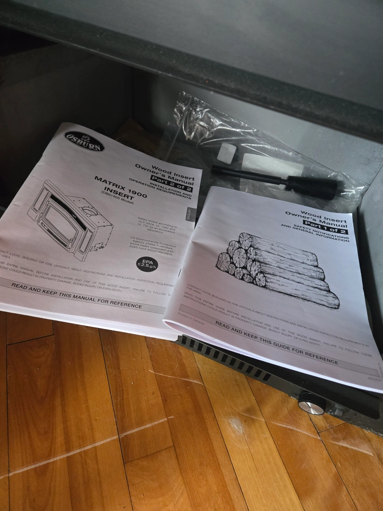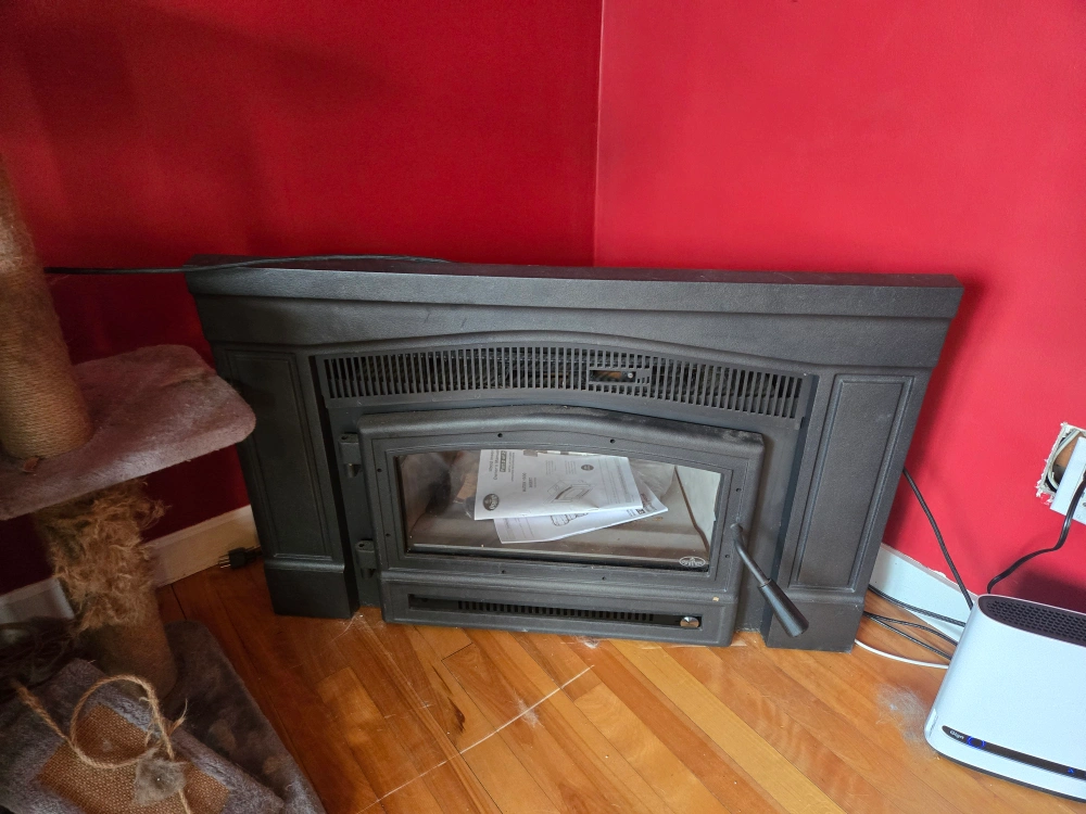 Black wood burning fireplace insert, comes with manual. Includes fire bricks. In good condition. new never used. 3315 + tax retail