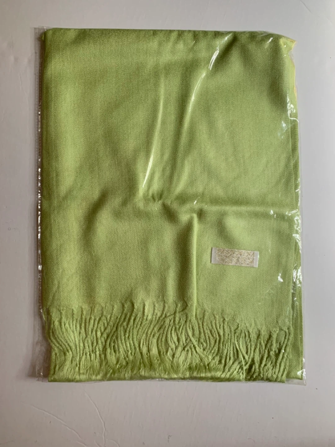 Brand new Pashmina type scarf in a lovely light green colour! Made in China.