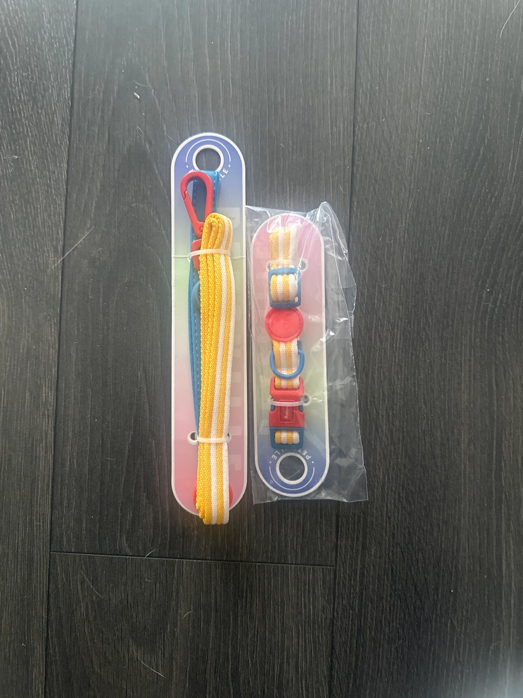 I'm selling a brand new Petille pet leash and collar set! The set includes a stylish leash and a matching collar, perfect for your furry friend. It's still in its original packaging.