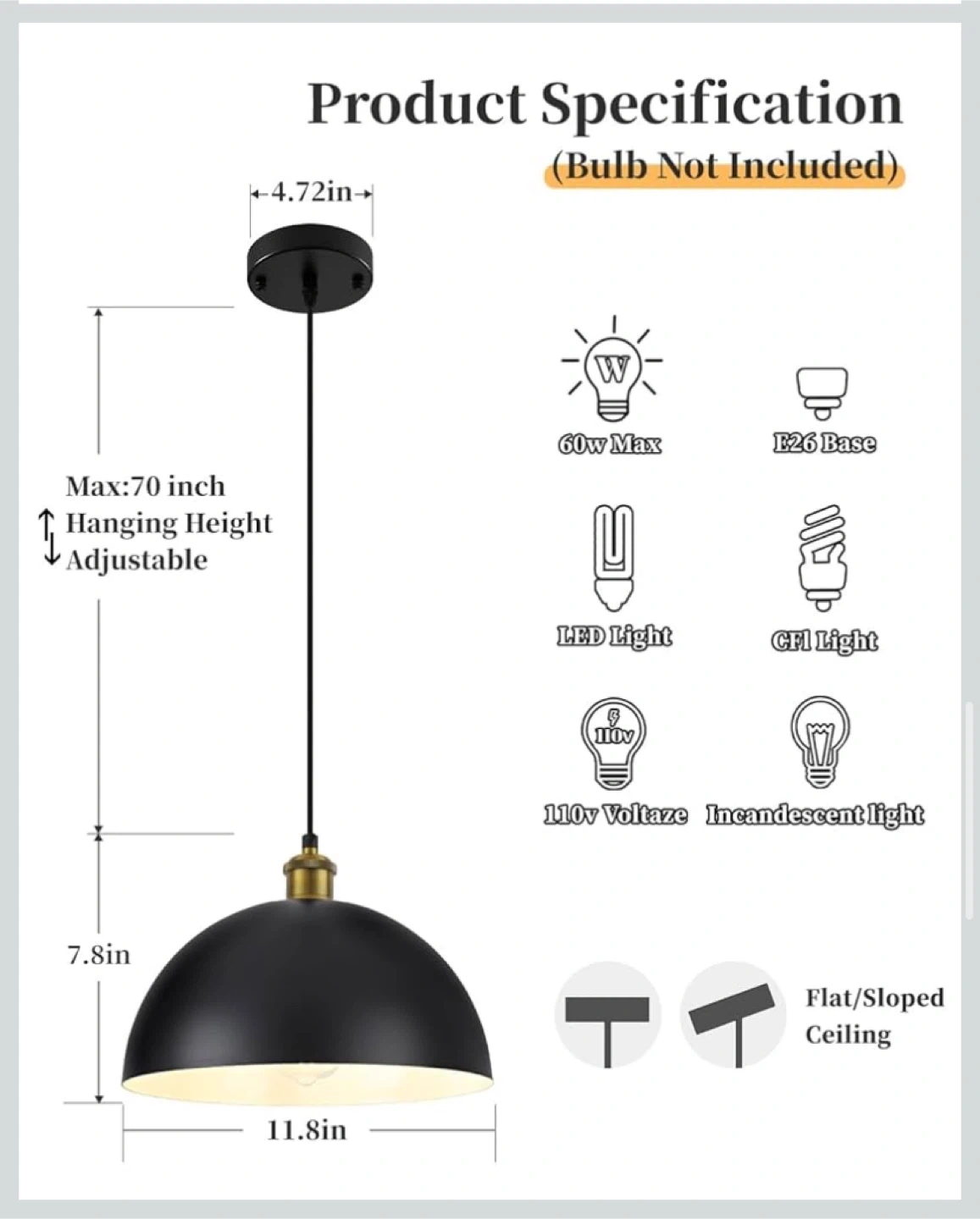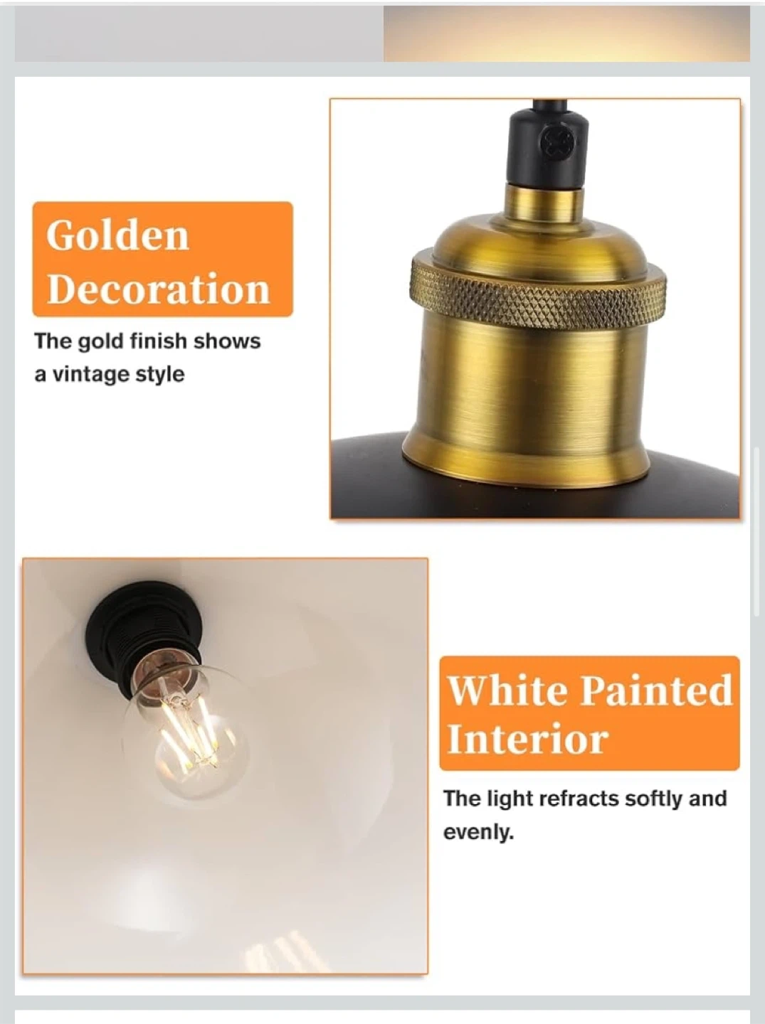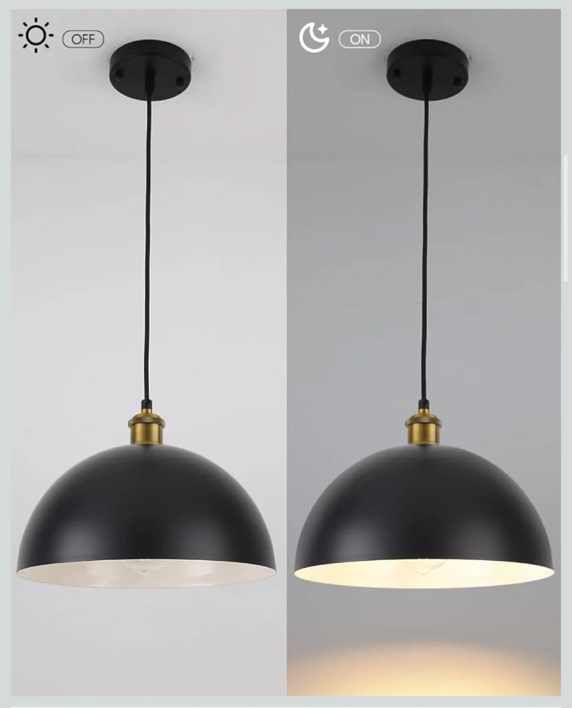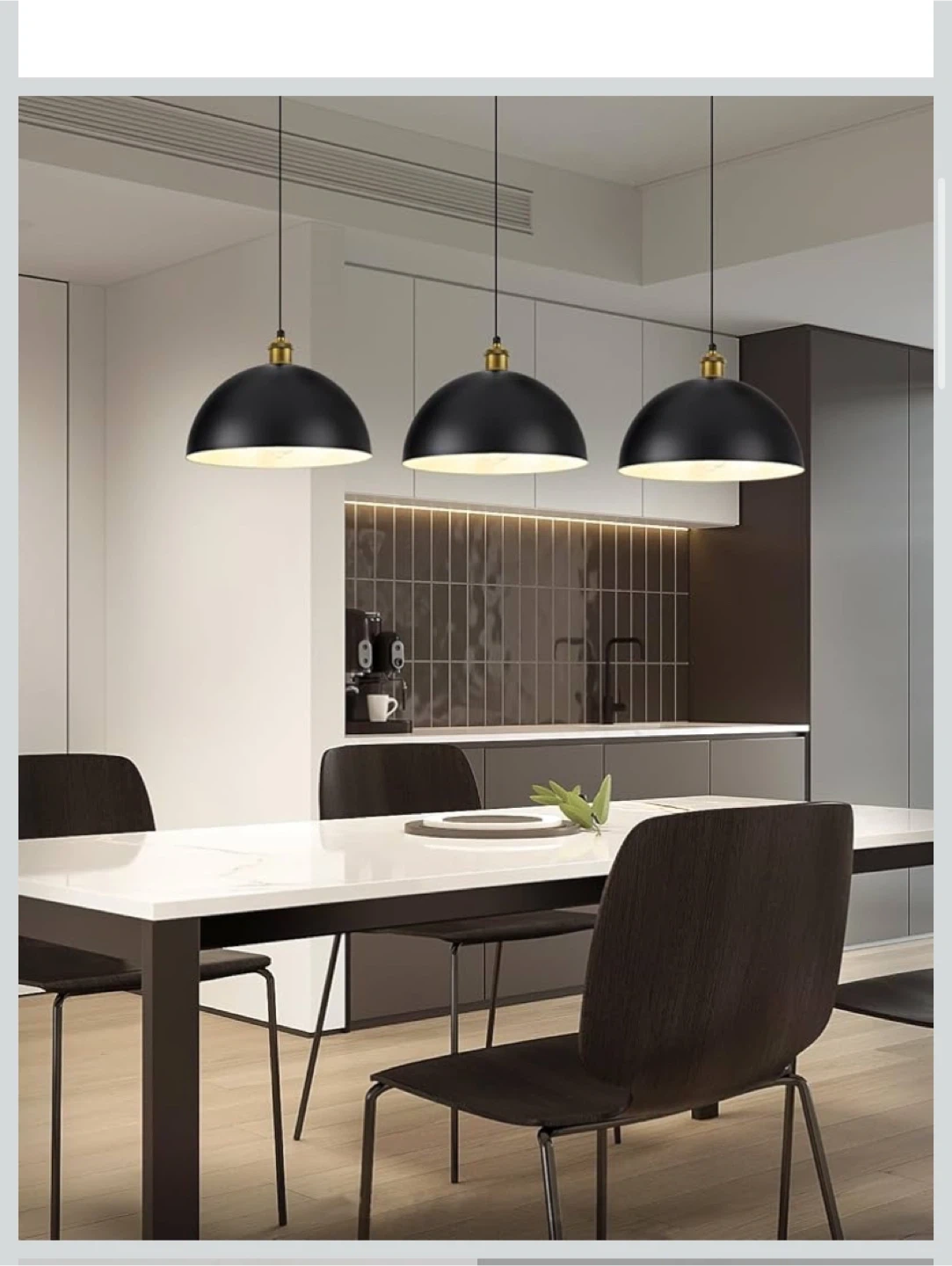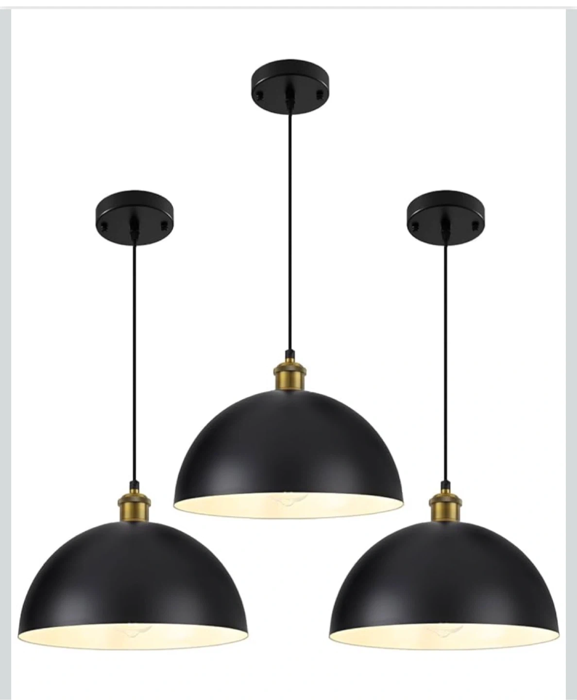 Selling a new PINDODO Dome Pendant Restaurant 3 Pack. These are black with a gold interior. Perfect for adding a modern touch to any space!