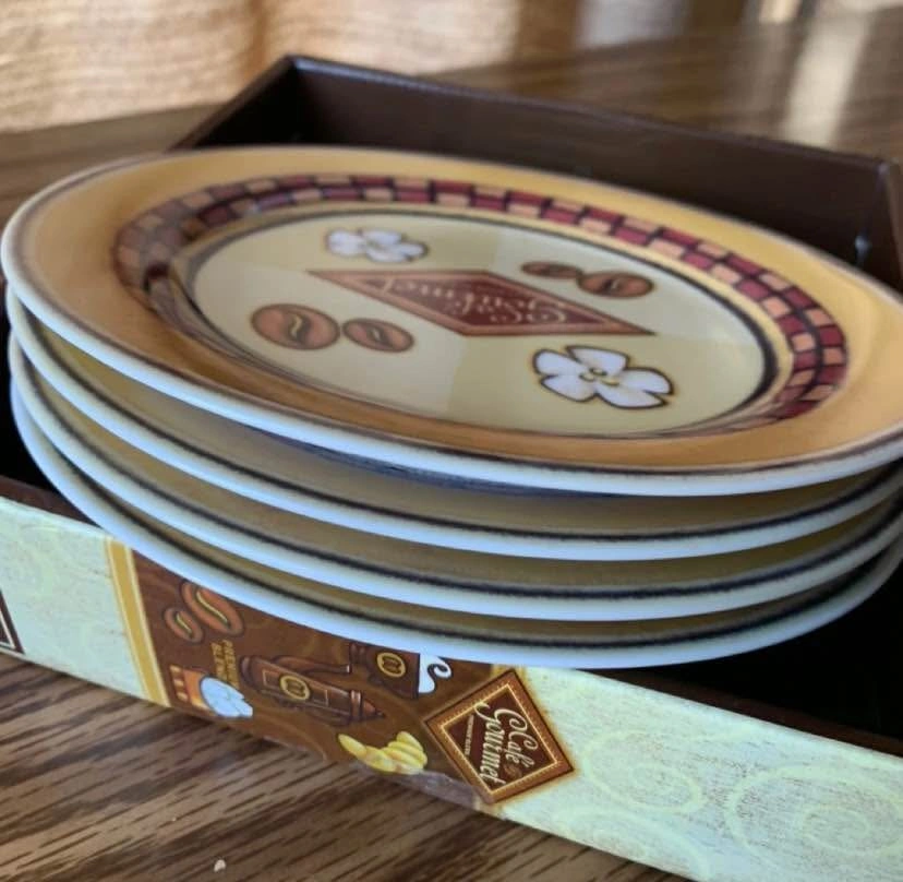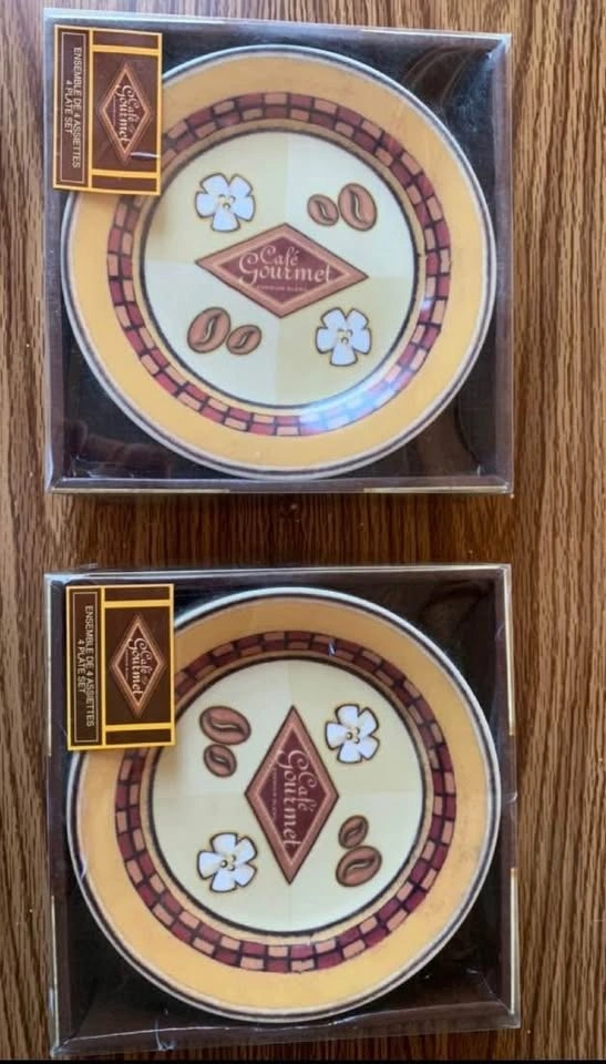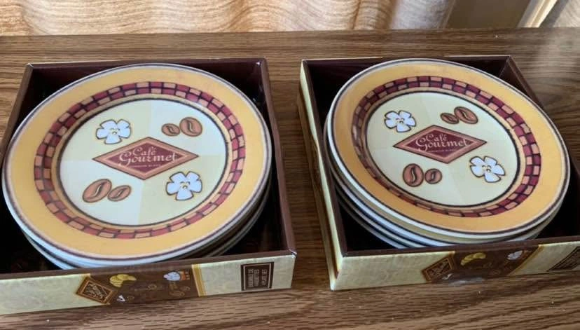 Nice gift idea, Nice print and good quality cake or fruits plates. Each set contains 4 beautiful plates for $20. Asking $30 for two sets (8 plates total).