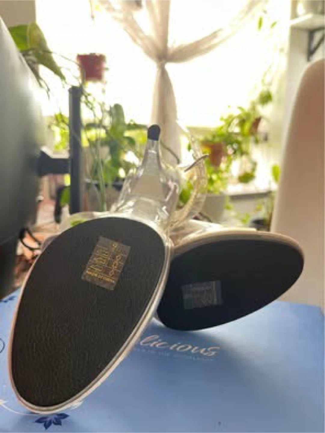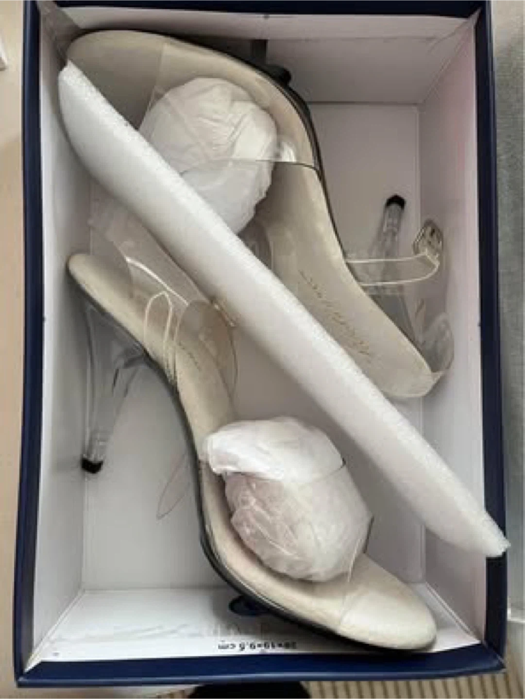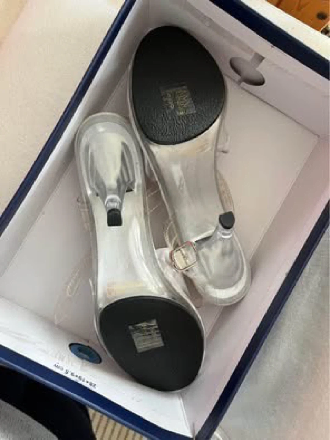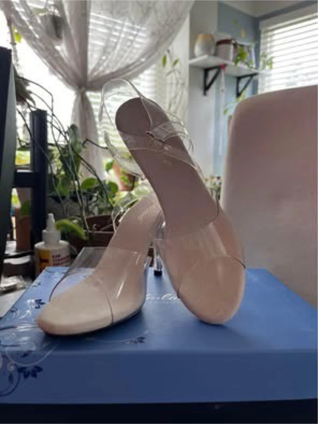 These Pleaser heels are brand new and come in the original box! They're a clear colour and size 9M. The model number is CAR408/C/M. Perfect for a night out!