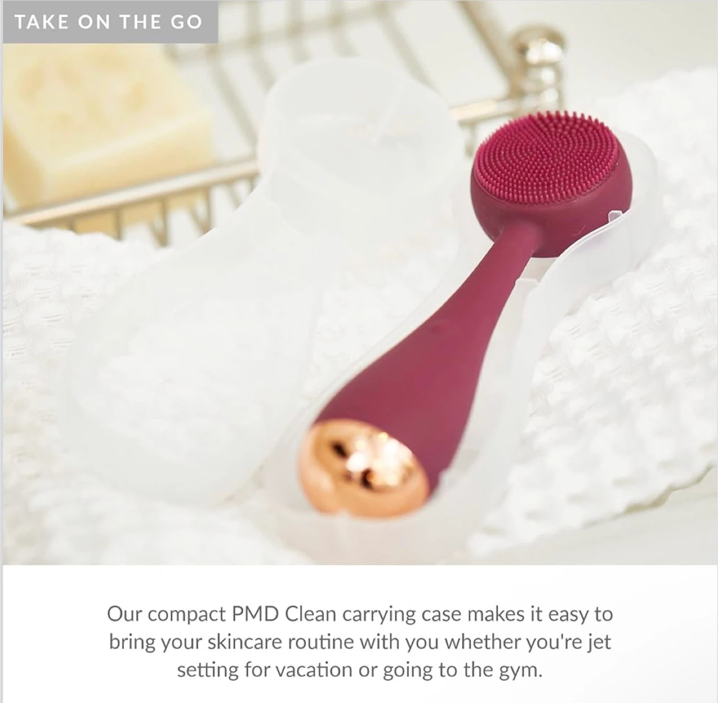 A brand new travel and storage case designed to protect a PMD Clean facial cleansing device for the original PMD Clean. Clear. Device not included.