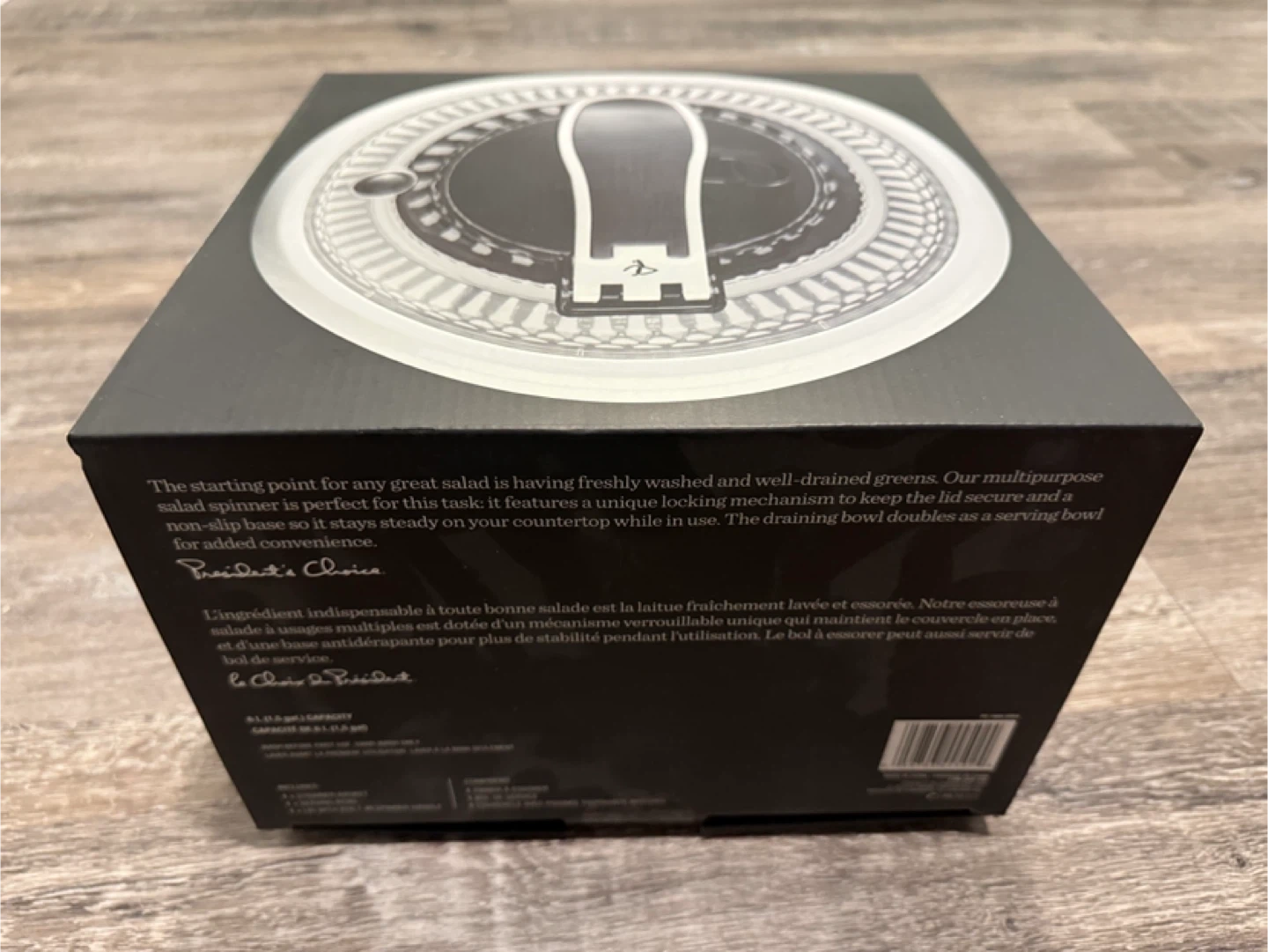 I have a brand new President's Choice salad spinner for sale, still in its original box! It features a unique locking mechanism to keep the lid secure, and it has a non-slip base. The draining bowl doubles as a serving bowl for added convenience Pick up Sage Hill NW Cash only Check out my other listings Pet and smoke free home